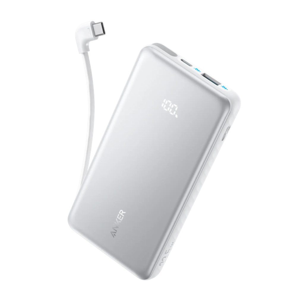 Внешний аккумулятор Anker Zolo 10000mAh 30W (A110DH21) в белом цвете — это компактное и стильное решение со встроенным кабелем, которое избавляет от необходимости носить с собой лишние провода.
