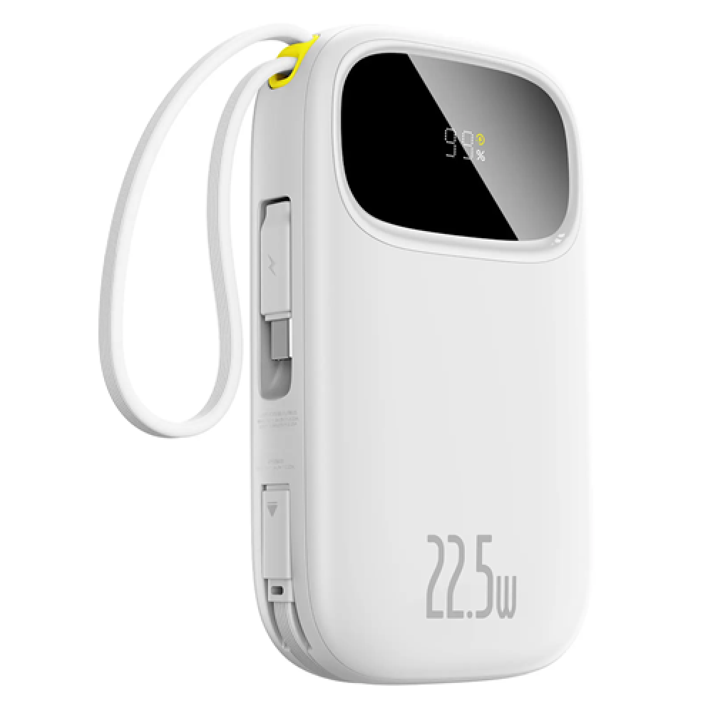 Компактный power bank на 10000mAh с быстрой зарядкой до 22.5W и цифровым дисплеем. Подходит для смартфонов, планшетов и других устройств с зарядкой по USB.