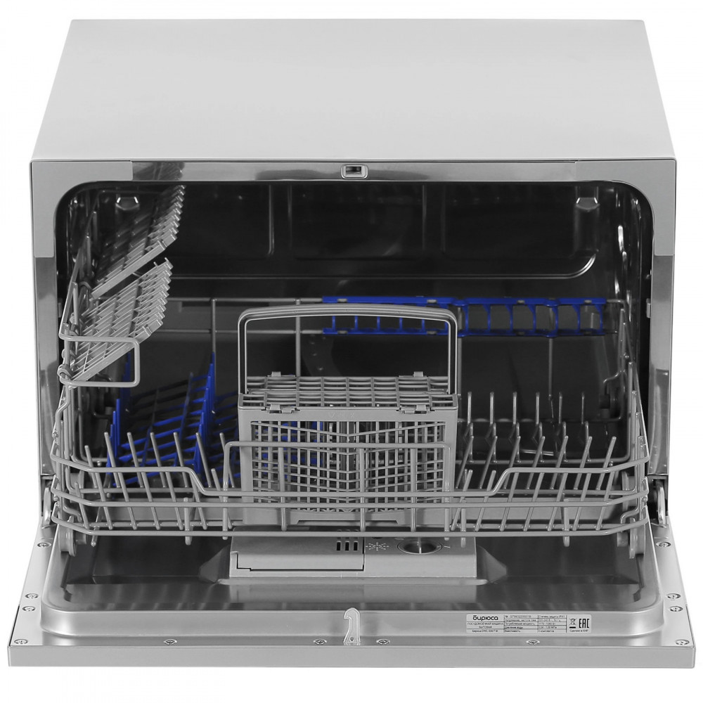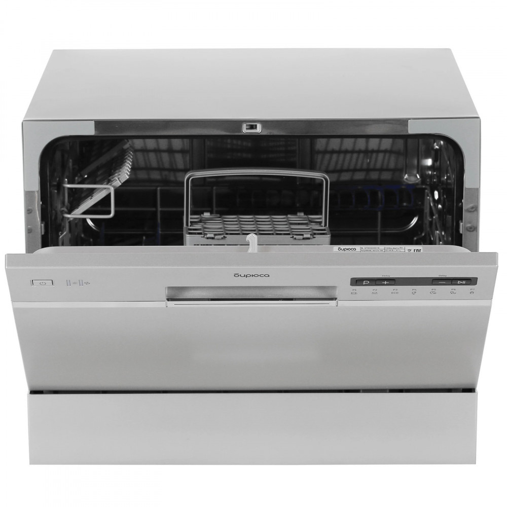 Посудомоечная машина БИРЮСА DWC-506/7 M — компактная настольная модель, предназначенная для установки на кухне. Она вмещает до 6 комплектов посуды и оснащена 7 программами мойки, включая интенсивную, обычную, ЭКО, стекло, 90 минут, быструю и детскую посуду.
