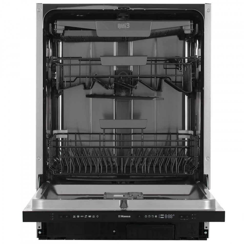 посудомоечная машина Hansa ZIM667ELH на 14 комплектов посуды оснащена тремя регулируемыми по высоте корзинами и лотком для столовых приборов. Вы можете использовать 7 программ мойки, режим замачивания и таймер отсрочки на 24 часа. За 1 цикл ПММ потребляет 747 Вт·ч и 9.8 л воды.
