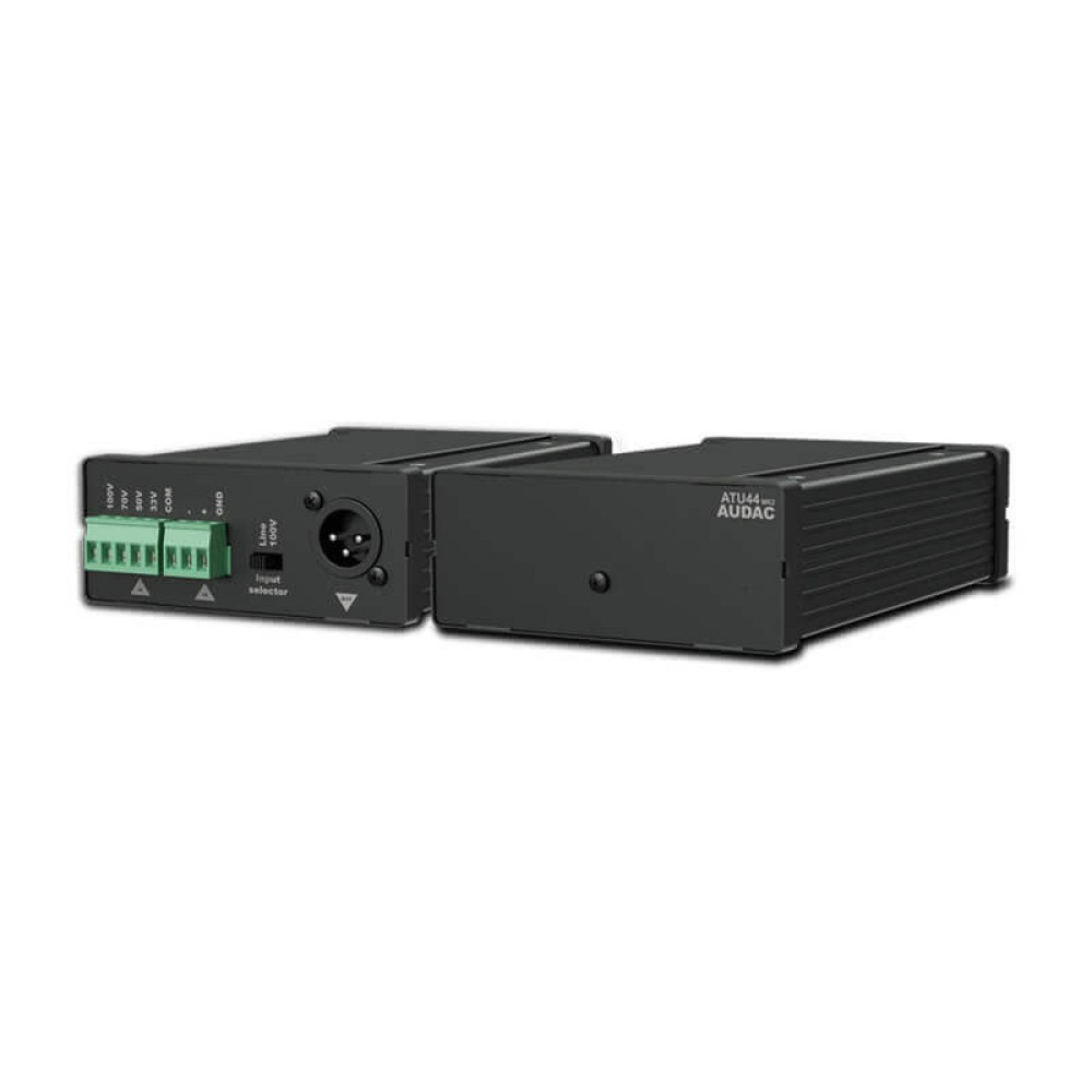 AUDAC ATU44MK2 – универсальный адаптер входов, который может быть использован для преобразования сигнала любого уровня на громкоговорители (подключенные по 100, 70, 50, 33 В или 8 Ом), балансного и небалансного сигнала линейного уровня в балансный сигнал линейного уровня. Входы и выходы гальванически изолированы, таким образом, дополнительно прибор исключает вероятность создания «земляной петли» и предотвращает возникновение связанного с этим постороннего гула и шума.