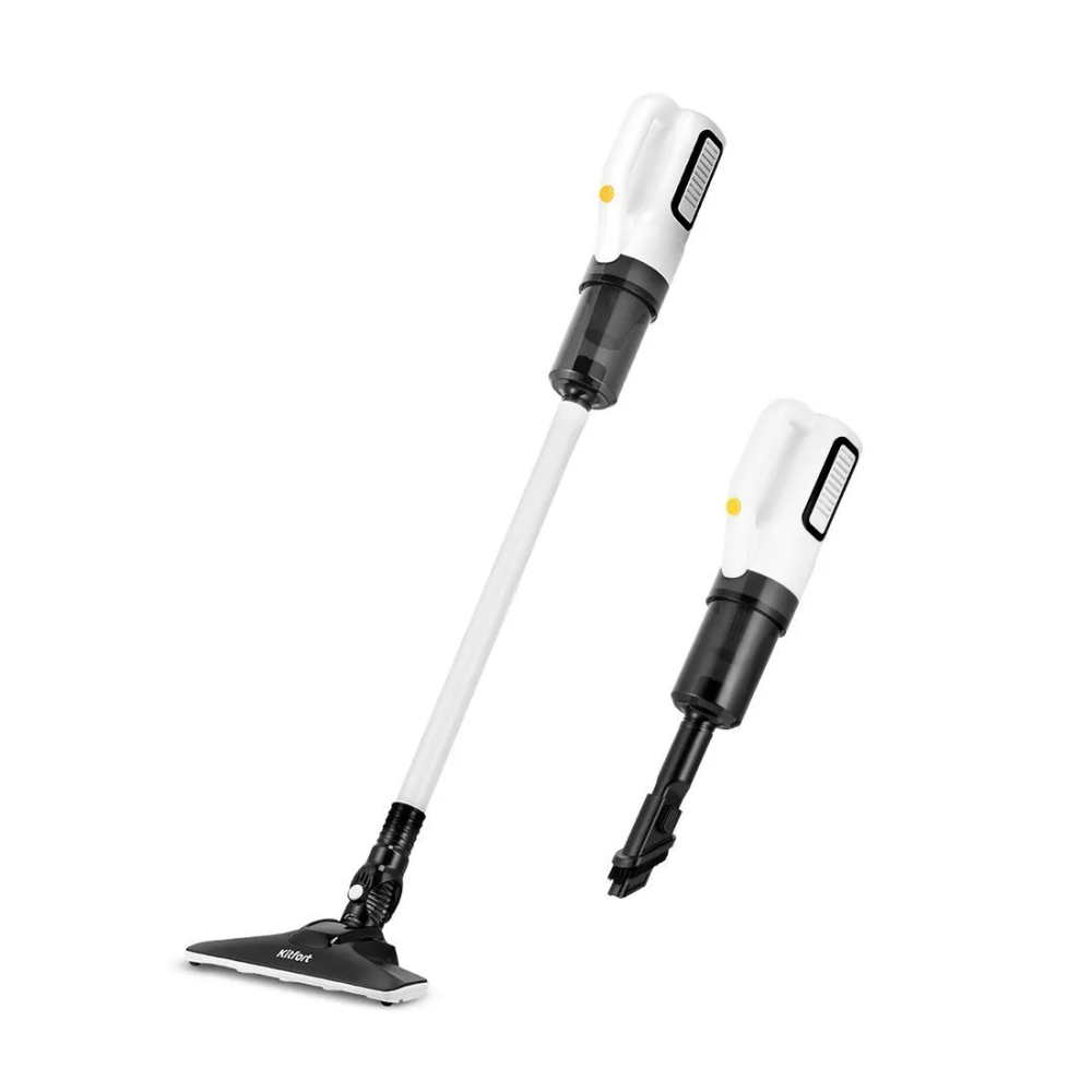 Вертикальный пылесос КТ-5261 удобен для локальной уборки. Компактный, всегда под рукой, он легко проникает в труднодоступные места без необходимости перемещать громоздкий корпус и управляться с непослушным шлангом. Конструкция «2 в 1» включает ручной пылесос, который можно использовать отдельно. Он удобен для уборки углов, плинтусов, мебели, шкафов, кухонных шкафчиков, книжных полок, а также ковриков и багажника автомобиля. КТ-5261 невероятно прост в управлении — для его работы достаточно всего одной кнопки. Никаких сложностей, просто нажмите и приступайте к уборке! Вертикальный пылесос КТ-5261 отлично подходит для оперативной уборки, например, рассыпанных крошек или песка от обуви в коридоре. Пылесос оснащен маневренной щеткой для пола, которая вращается в двух плоскостях. Пыль из пылесборника вытряхивается очень просто. В пылесборнике установлен фильтр тонкой очистки, который задерживает частички пыли. Фильтр можно вынуть и промыть водой.