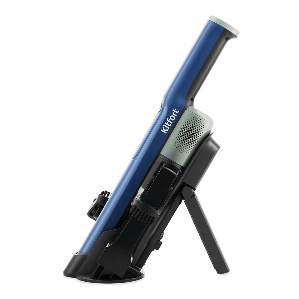 В комплекте с Kitfort КТ-578 поставляются две насадки: удлиненная узкая со складной ворсовой щеткой для труднодоступных мест и широкая насадка для ковровых покрытий/текстиля. Полноценного заряда аккумулятора достаточно доя 24 минут непрерывной работы беспроводного пылесоса. Для выполнения подзарядки предусмотрена док-станция. Среди особенностей пылесоса отмечаются мощный бесщеточный мотор BLDC и 2 режима интенсивности всасывания.