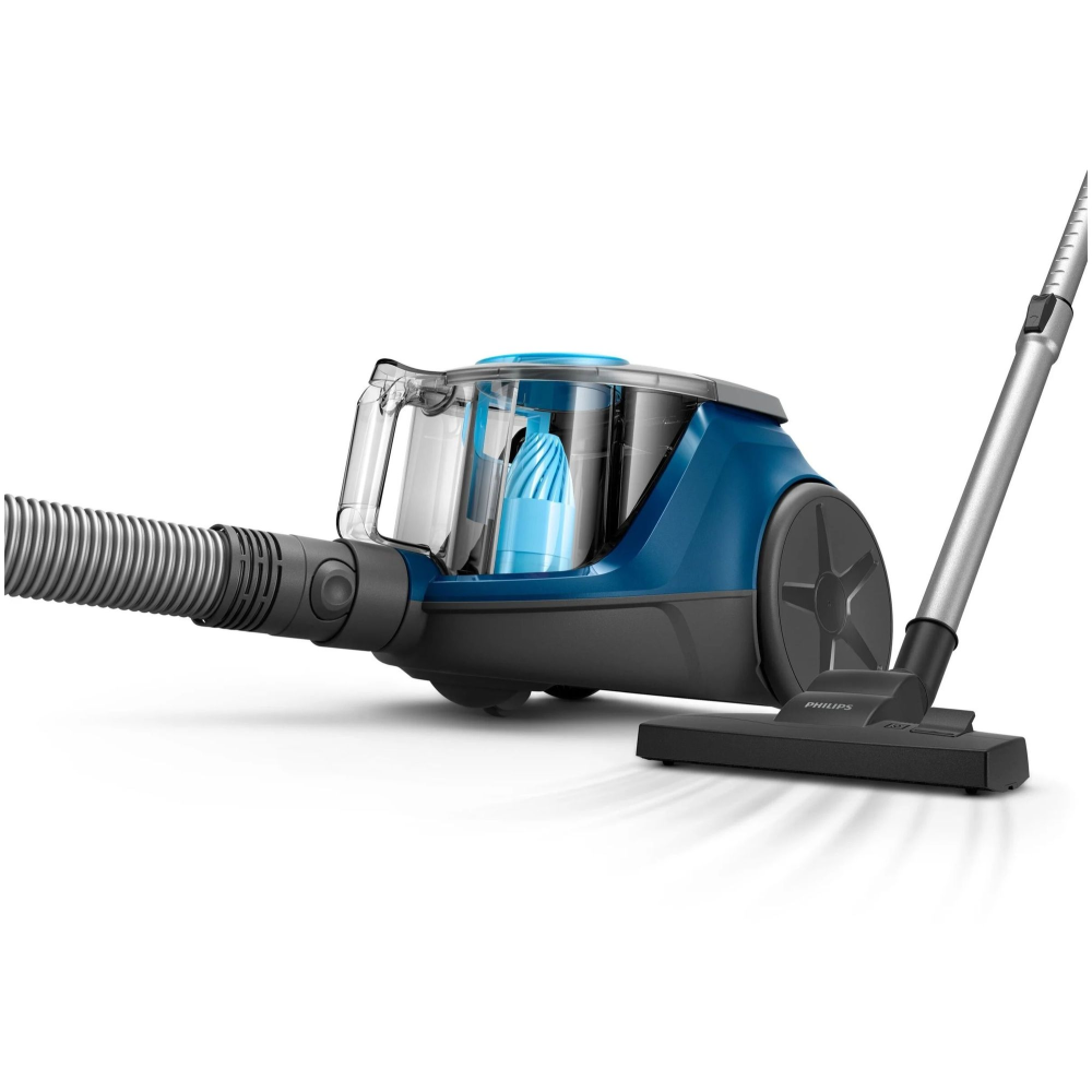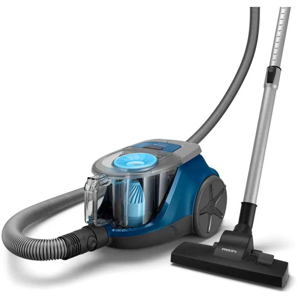 Пылесос Philips XB2022/01 предназначен для сухой уборки любых напольных покрытий: дерева, ламината, кафельной плитки, линолеума и ковров. Мощный мотор 1800 Вт помогает прибору наводить чистоту максимально эффективно.Модель поставляется с универсальной и щелевой насадками. Это значит, что функционал устройства значительно расширяется, и ему по плечу труднодоступные места: например, вдоль плинтусов и под диваном. Благодаря технологии Power Cyclone 4 собранный сор сбивается в плотный комок – опустошайте контейнер без надоедливых клубов пыли. О необходимости это сделать сообщит наглядный индикатор заполнения. Бытовой помощник оснащён системой фильтрации Super Clean Air. Она удерживает мельчайшие частицы загрязнений, очищая воздух в помещении. С 6-метровым сетевым шнуром вы сможете свободно маневрировать между предметами мебели. Важно, что кабель сматывается сам, поэтому вам не нужно будет тратить на это своё драгоценное время. Philips XB2022/01 автоматически отключается при перегреве во избежание поломки. Мягкий бампер не повредит случайно отделку шкафа, а прорезиненные колёса не поцарапают паркет. Компактный и сравнительно лёгкий по весу прибор удобно переносить, тем более что для этого есть эргономичная ручка. Устройство можно ставить вертикально и горизонтально, так что вы без проблем найдёте подходящее место для его хранения.