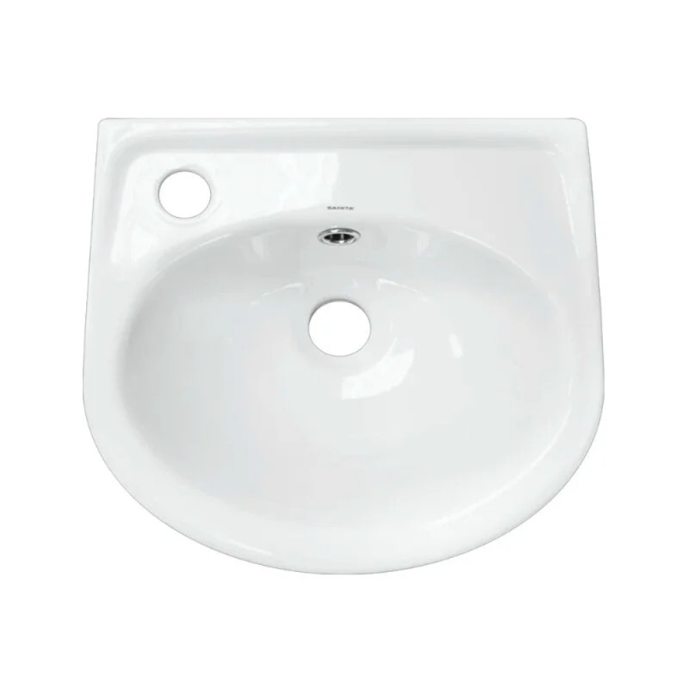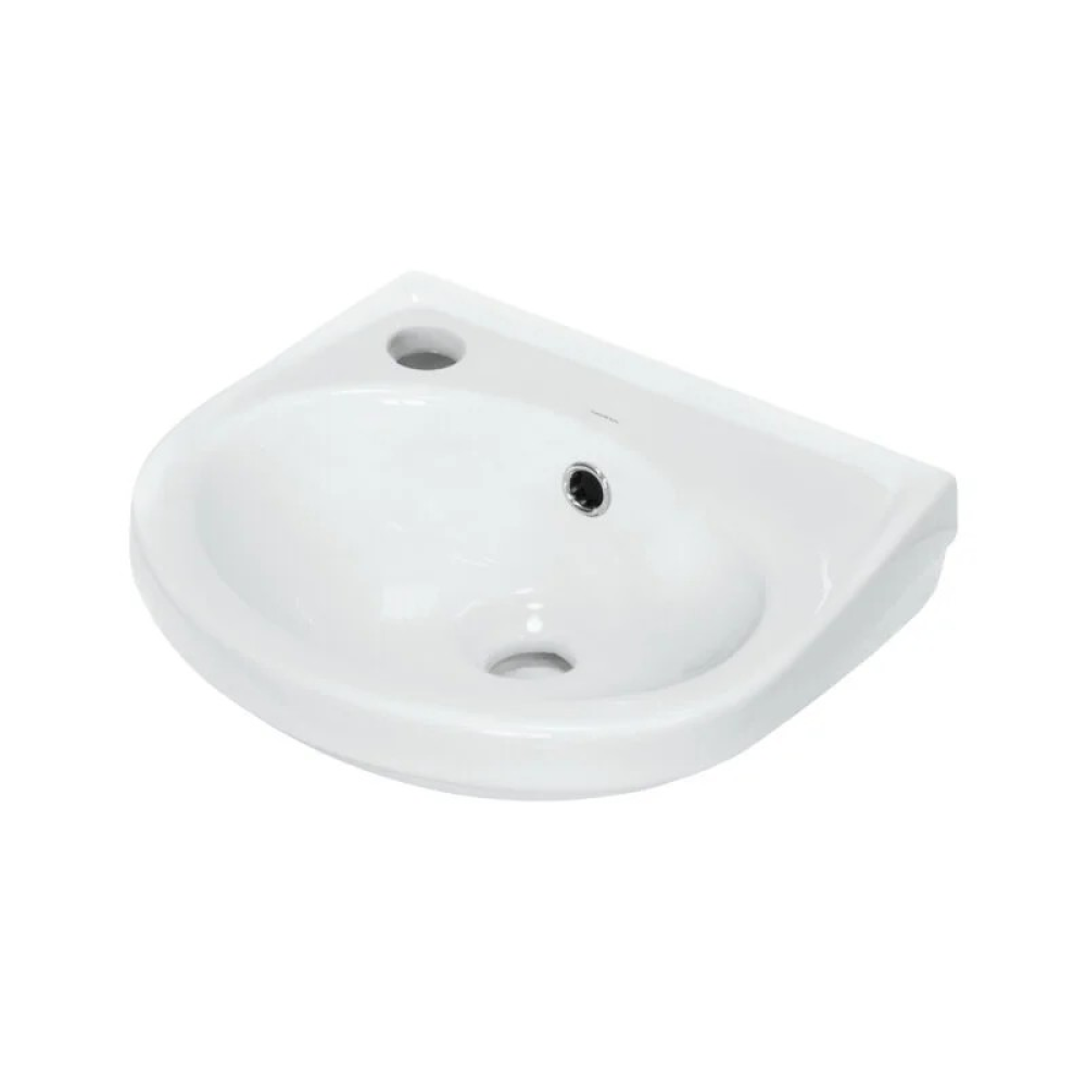 Компактная настенная фарфоровая раковина с отверстием под смеситель сбоку (угловая установка возможна), встроенный перелив, лёгкая и удобная для маленьких санузлов и коммерческих помещений