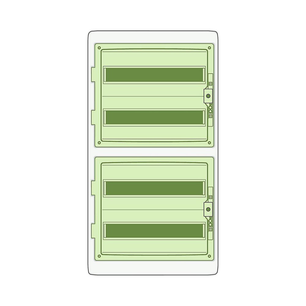 Этот защищенный от атмосферных воздействий щит Mureva представляет собой щит для модульного устройства, устанавливаемый на поверхности. Он состоит из 4 рядов по 18 модулей по 18 мм. Может применяться ко всем типам модульных распределительных устройств. Степень защиты IP - 65. Этот щит предназначен для водонепроницаемой установки внутри или снаружи помещений. Он оснащен прозрачной зеленой дверью. Цвет корпуса - светло-серый (RAL 7035). Он предназначен для установки в жилых домах, небольших зданиях и на промышленных объектах. Кабели могут быть введены сверху или снизу шкафа с помощью 17 предварительно вырезанных отверстий. Он оснащен задней панелью и передней крышкой с вырезом. Он поставляется с DIN-рейкой. Он поставляется с 2 клеммными блоками с 32 отходящими устройствами, всего 64 отходящих устройства (32x10mm² + 32x16mm²). Комплект маркировки также поставляется внутри изделия. Класс электрической изоляции - класс II (двойная изоляция). Категория перенапряжения - класс II. Рассеиваемая мощность составляет 89 Вт. Номинальный ток In составляет до 160 А. Данное изделие соответствует требованиям стандарта IEC 61439-3. Размеры (Ш) 448 мм x (В) 842 мм x (Г) 160 мм. Материал представляет собой самозатухающий полимерный материал. Его сопротивляемость пламени и аномальному нагреву составляет 650°C согласно IEC 60695-2-1. Устойчив к воздействию ультрафиолетового излучения. Степень защиты IK составляет IK09. Температура эксплуатации от -25°C до 60°C.