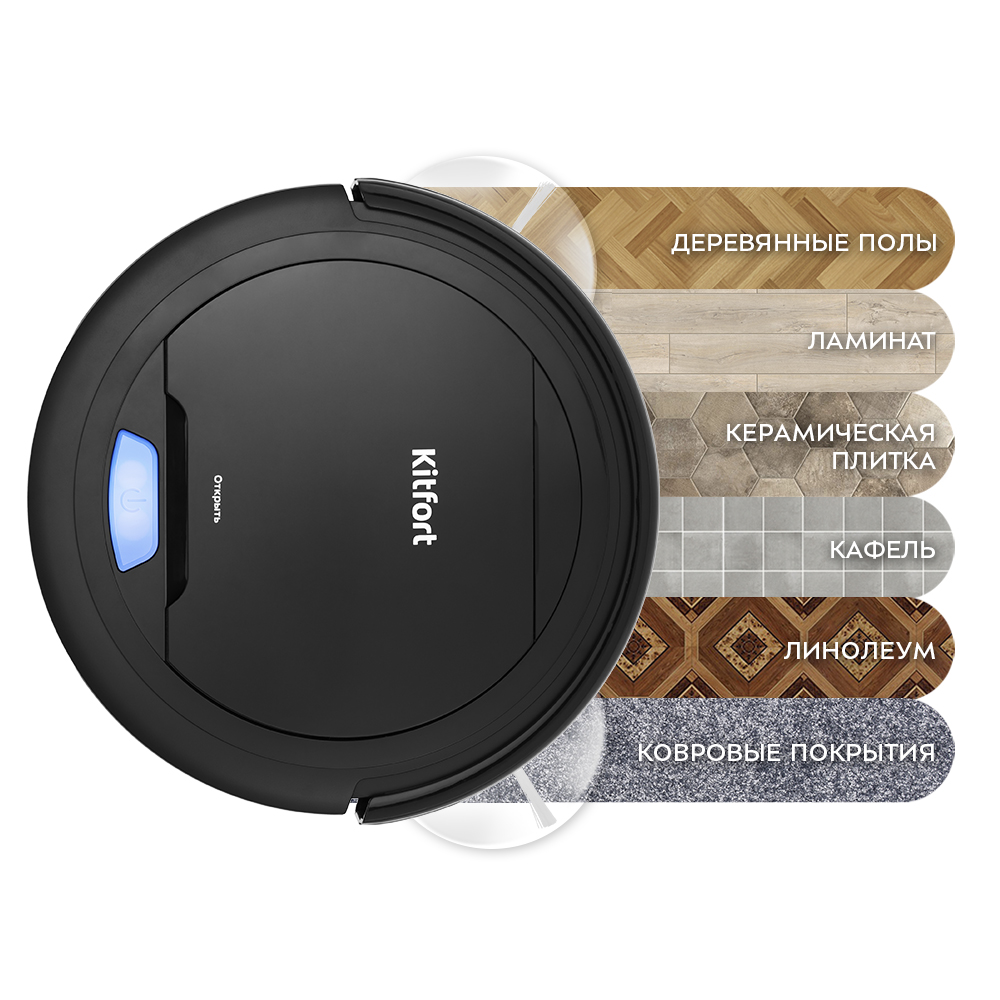 Робот-пылесос КТ-562 компактен и прост в использовании. Пылесос имеет лаконичный дизайн. Для начала уборки вам нужно нажать единственную кнопку на корпусе пылесоса. Подходит для уборки различных поверхностей. Вы можете провести влажную уборку, прикрепив к пылесосу модуль с влажной тряпкой. Робот сначала засасывает пыль и мусор в пылесборник, а затем увлажняет пол тряпкой. Благодаря специальным датчикам, которые срабатывают на вертикальные препятствия и при столкновении с препятствием, пылесос меняет направление движения и продолжает уборку. А благодаря датчикам поверхности прибор не упадёт с больших перепадов высоты. Робот-пылесос прост в уходе. Пылесборник легко вынимается и чистится после уборки. Пылесос быстро заряжается за 3 часа. Вам нужно только подключить штекер зарядного устройства к входному разъёму питания пылесоса, а зарядное устройство - в розетку сети электропитания. Уровень шума робота-пылесоса составляет 65 дБ, благодаря чему он может работать даже в то время, когда вы отдыхаете.
