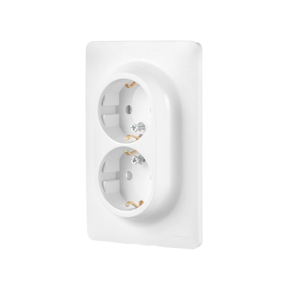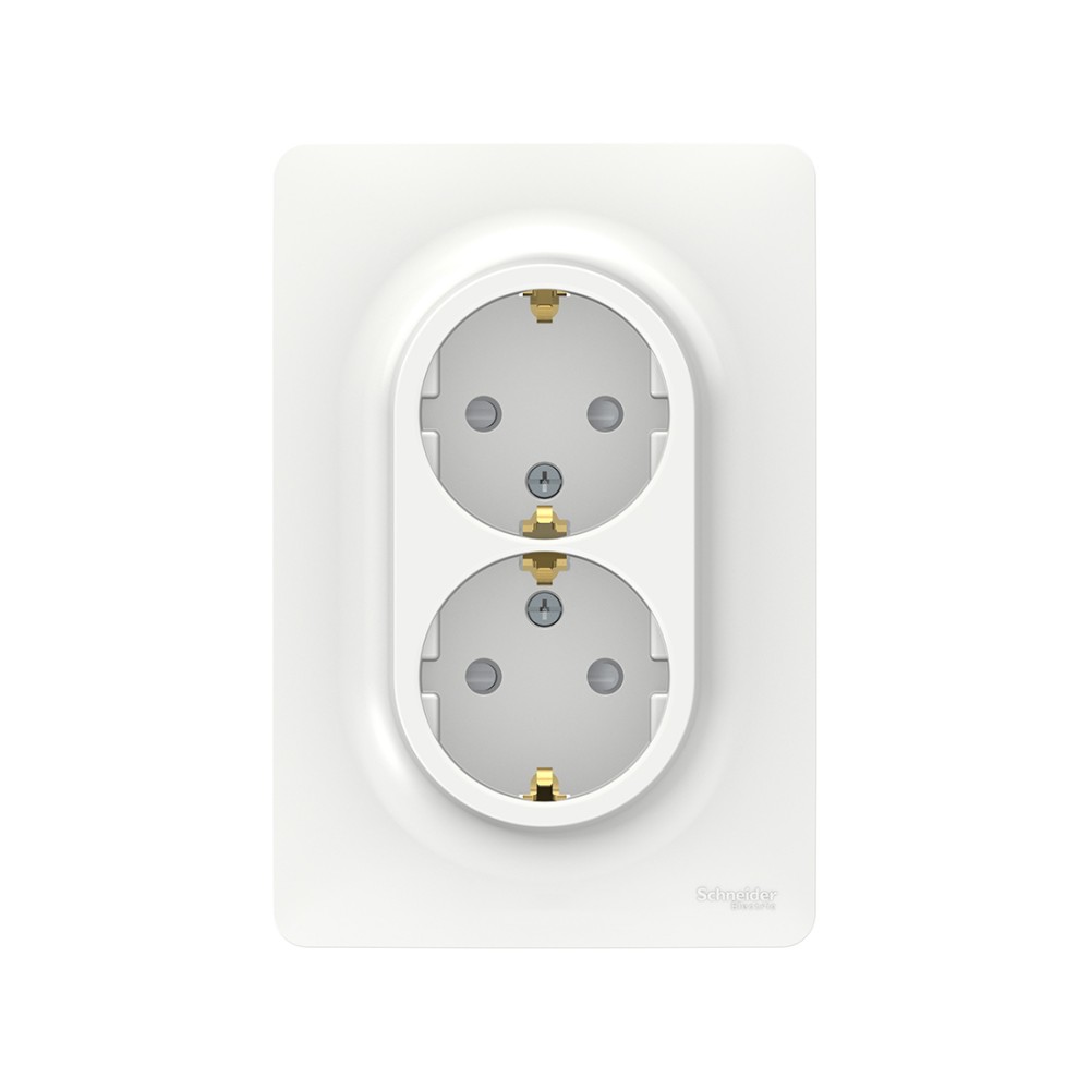 Розетка двойная с заземлением SE NU206718 Unica New со/штор винтавой зажим белый