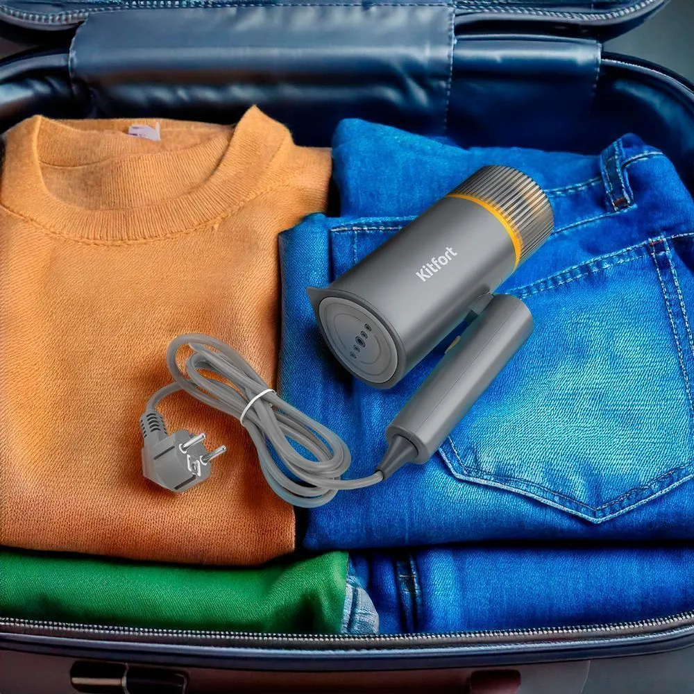 У отпаривателя складная ручка для удобного хранения и перемещения, поэтому устройство не займёт много места в шкафу и его удобно брать с собой в путешествия.