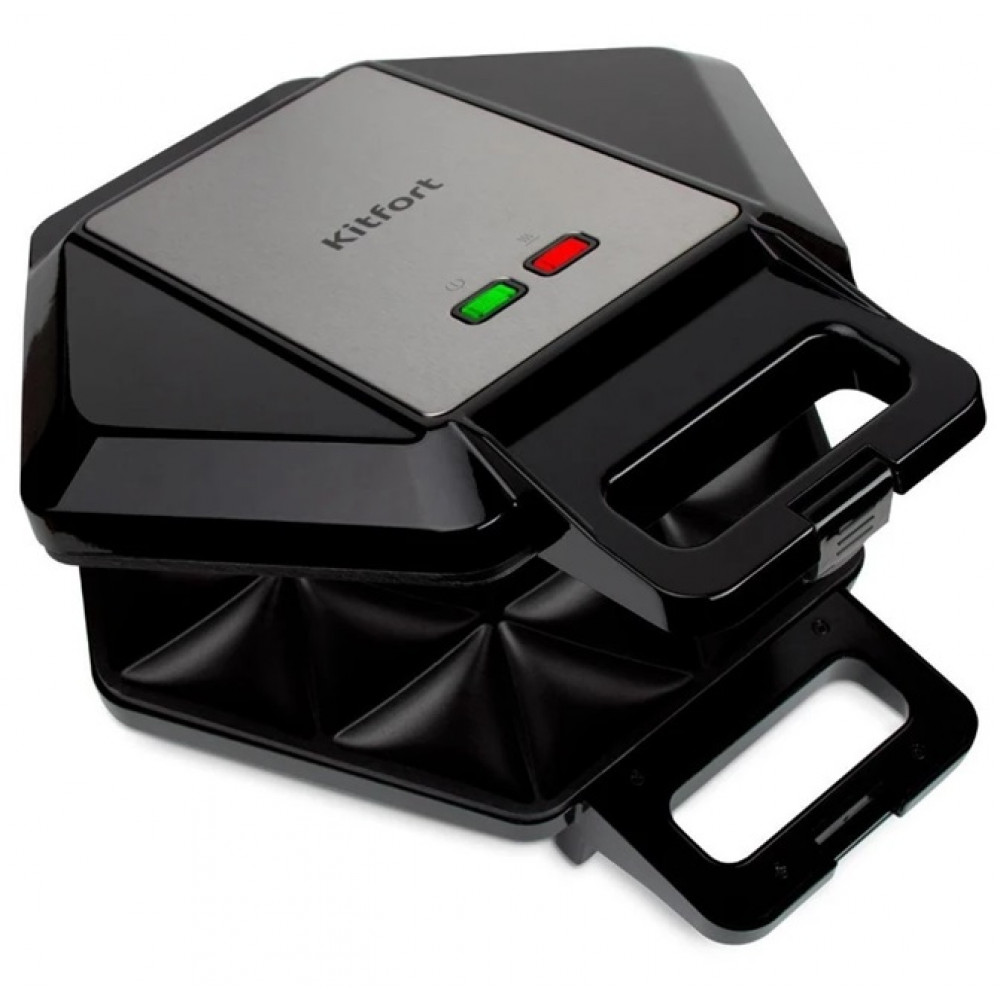 Зажим на ручке удерживает крышку прибора в закрытом состоянии, поэтому зажим удобен в готовке, транспортировке и хранении. На приборе установлены индикаторы нагрева и работы, что упрощает использование самса-мейкера.