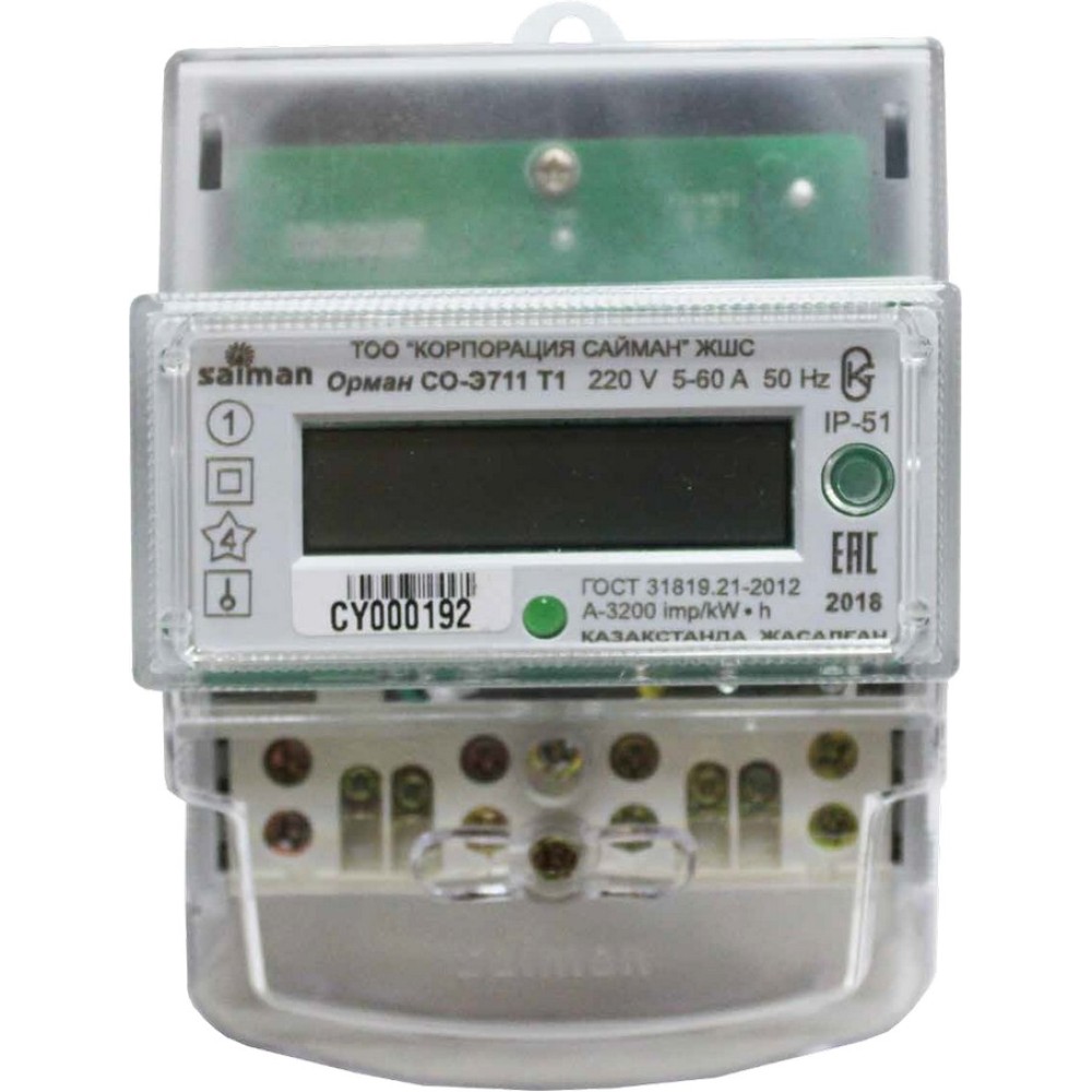 Статический счетчик (электронный) активной энергии Однофазный однотарифный ОРМАН СО-Э711 Т1 Д 220V 5(60)А на дин-рейке Код CY предназначен для измерения активной энергии в однофазных двухпроводных цепях переменного тока по одному тарифу.