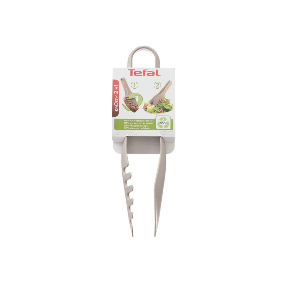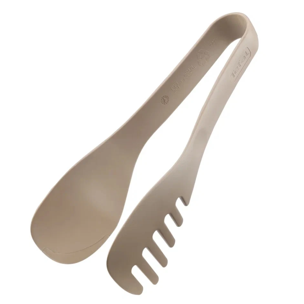 Щипцы кухонные Tefal K0260614 Enjoy светло-коричневого оттенка позволят с легкостью перемешать салат, а также переложить горячие пирожки или котлеты со сковороды в тарелку. Кроме того, такими щипцами удобно порционно накладывать блюда в тарелки на праздничном столе. Одна из сторон щипцов сделана в виде вилки, сквозь отверстия которой легко стекает лишний сок или масло.