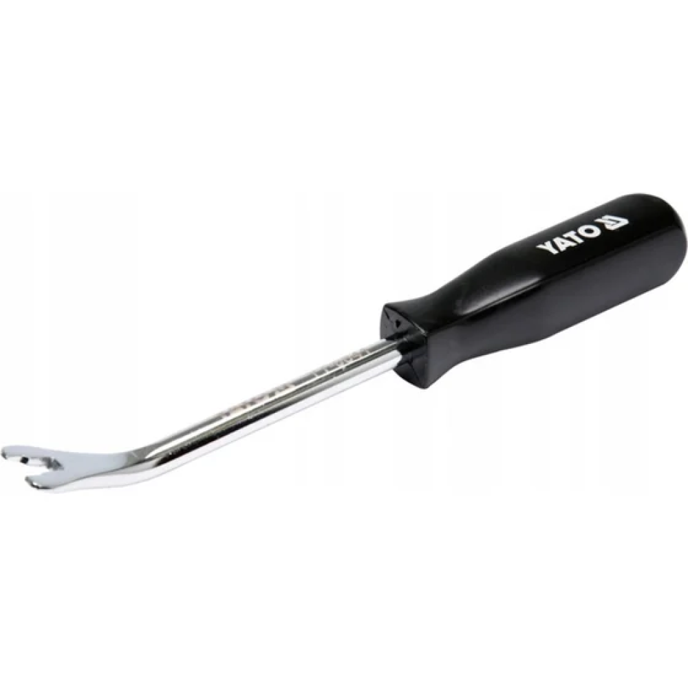 Съёмник клипс обивки YATO YT-0841 — это инструмент, предназначенный для безопасного и эффективного извлечения пластиковых клипс, фиксирующих обивку в автомобиле. Он оснащён вилочной конструкцией с рабочей длиной 13 мм и шириной 9 мм, что позволяет легко захватывать и удалять клипсы без повреждения обивки или креплений. Длина инструмента составляет 230 мм, что обеспечивает удобный доступ к труднодоступным местам. Ручка покрыта нескользящим PVC-покрытием для комфортной работы.