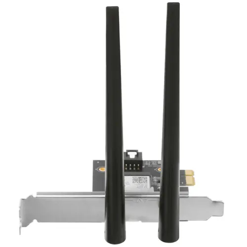 Подключение адаптера осуществляется при помощи интерфейса PCI-E, который отличается высокой пропускной способностью. Также устройство оборудовано внешними антеннами для улучшения качества сигнала. Поставляется в фирменной упаковке с кабелем для подключения питания.