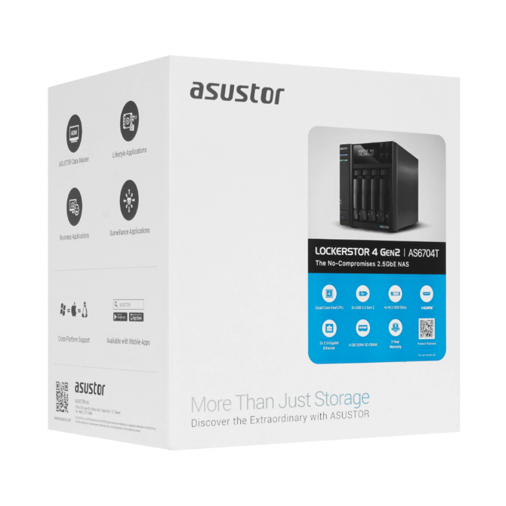 Сетевое хранилище (NAS) Asustor LOCKERSTOR 4 Gen2 оснащено 4-ядерным процессором Intel Celeron N5105 с тактовой частотой 1.4 ГГц, что обеспечивает высокую скорость передачи данных. Он имеет 4 отсека для дисков: поддерживается установка 3.5" SATA HDD и 2.5" SATA SSD, 4 слота для дисков M.2: поддерживается установка M.2 2280 NVMe PCIe 3.0, что позволяет пользователям настроить систему в соответствии с их потребностями. Устройство поддерживает диски с интерфейсом SATA 6 Гбит/с.