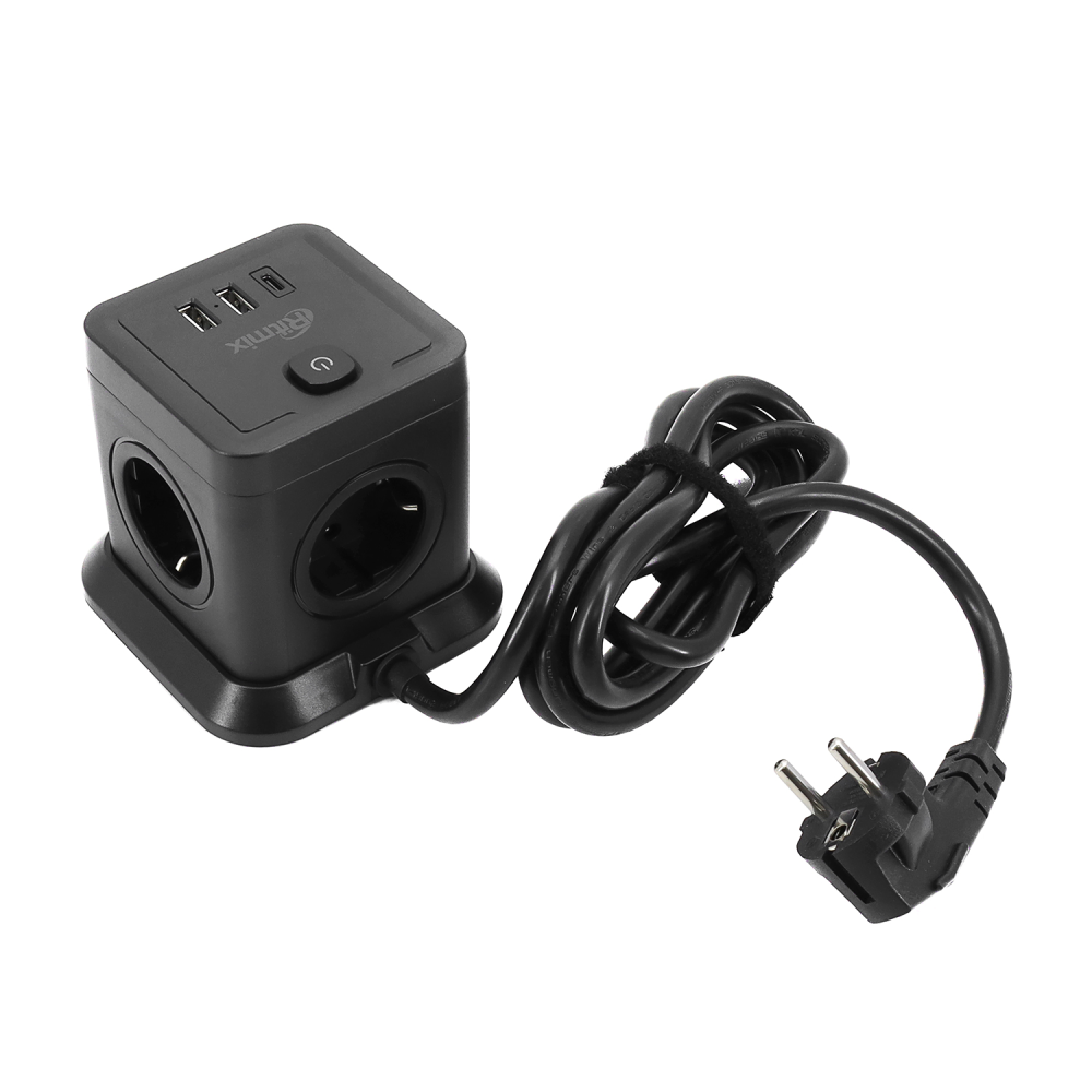 Сетевой фильтр с 4 розетками 220В, портом Type-C + 2 х USB портами. Кнопка питания, компактный дизайн. LED индикатор. Защита от перегрузки и скачков напряжения. Огнеупорный материал корпуса. Надежные плотные разъёмы с заземлением.