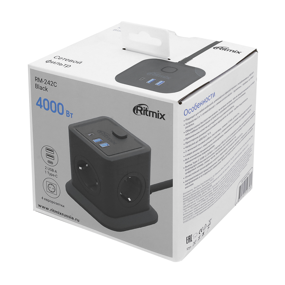 - встроенная функция Smart IC, за счет которой сетевой фильтр автоматически распознает подключенное через USB А или Type-C устройство пользователя и подает оптимальный ток питания;