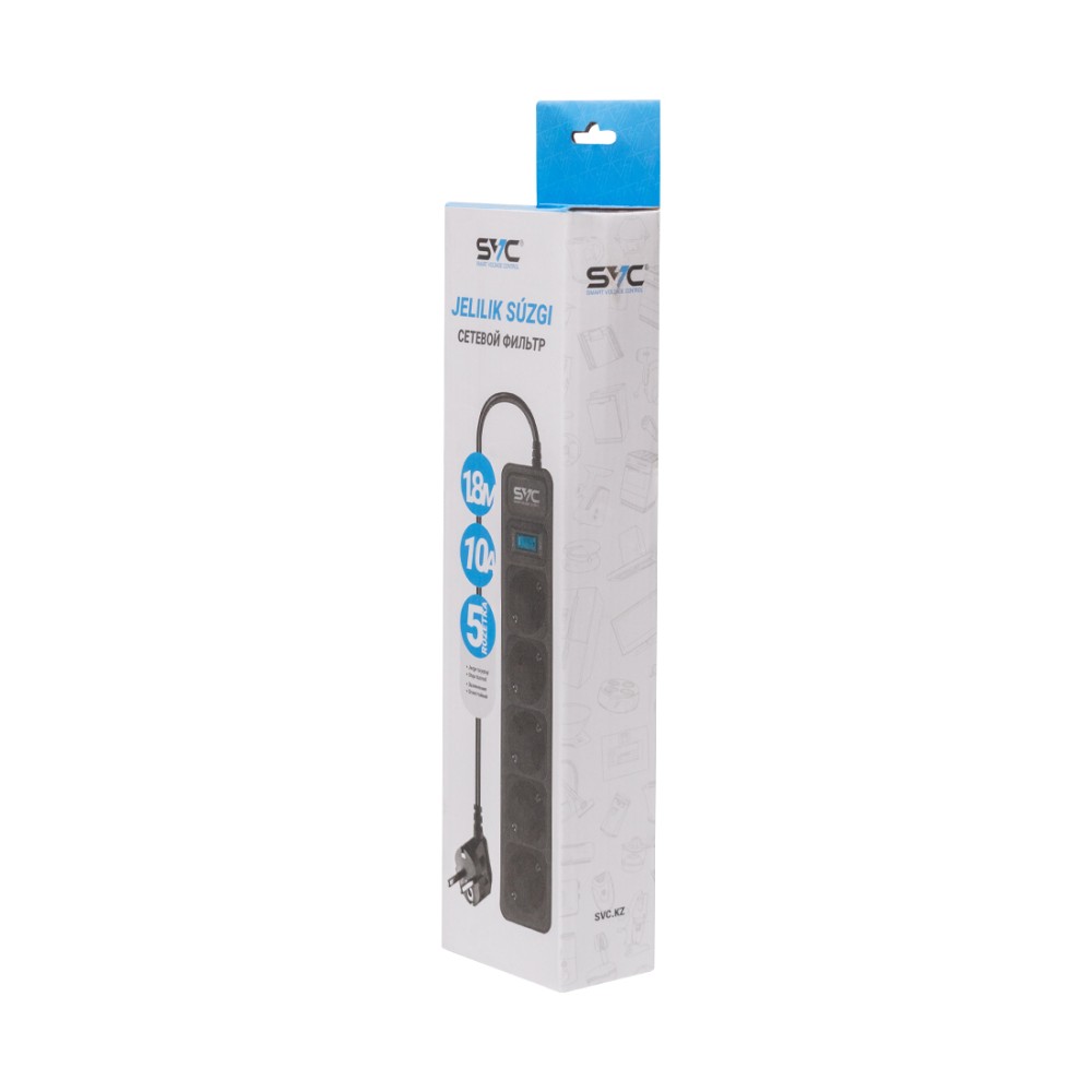Сетевой фильтр SVC предназначен для подключения электроприборов в местах, удалённых от стационарных розеток. Розеточный блок изготовлен из ударопрочной пластмассы. Защищает электронную технику от перегрузок по току, короткого замыкания, ВЧ и импульсных помех.