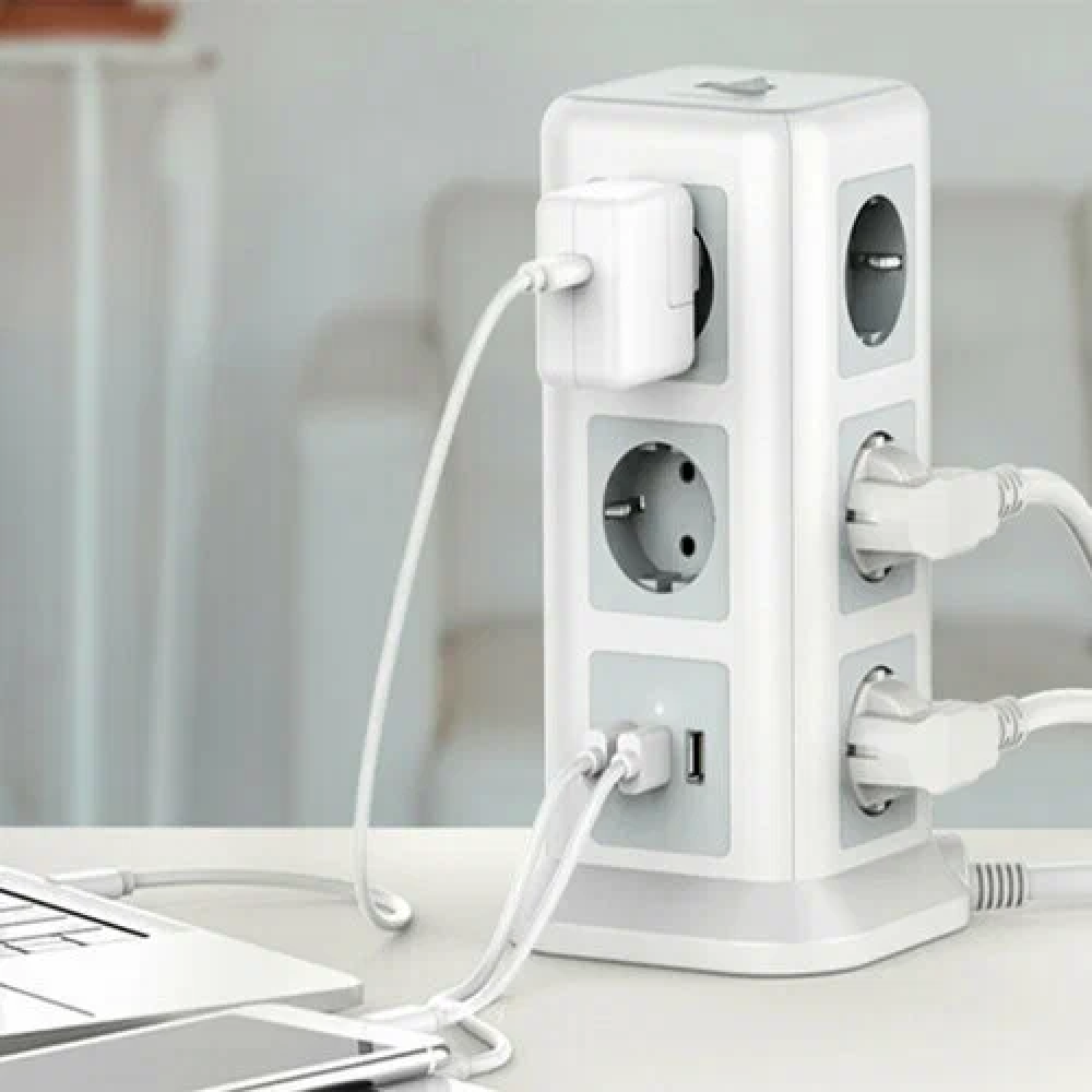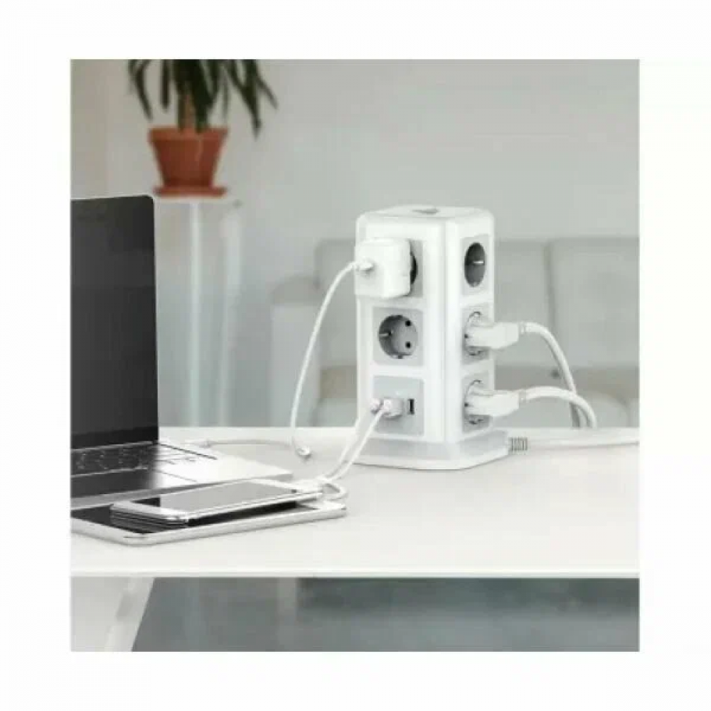 Универсальный сетевой фильтр Tessan TS-PS01DE00 с 6 розетками, 2 USB-A и 1 USB Type-C — подходит для подключения бытовой техники и зарядки современных гаджетов. Кабель длиной 2 м, корпус выполнен в сером цвете. Оснащён защитой от перегрузки и короткого замыкания, имеет общий выключатель и световой индикатор.