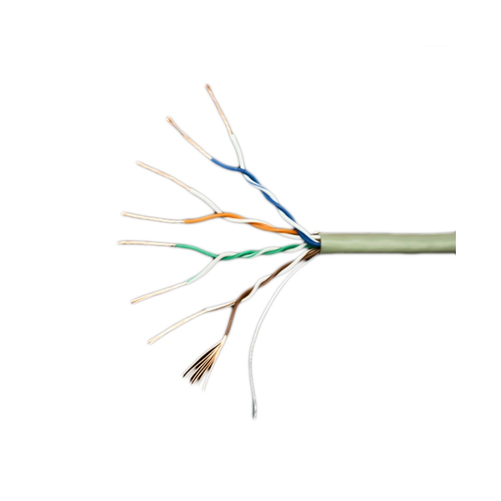 Это неэкранированный многожильный (UTP) 4 - х парный кабель 5e категории имеет стандартную PVC оболочку, применяется при прокладке внутри помещений, имеет повышенную прочность и не переламывается при многократных перегибах.