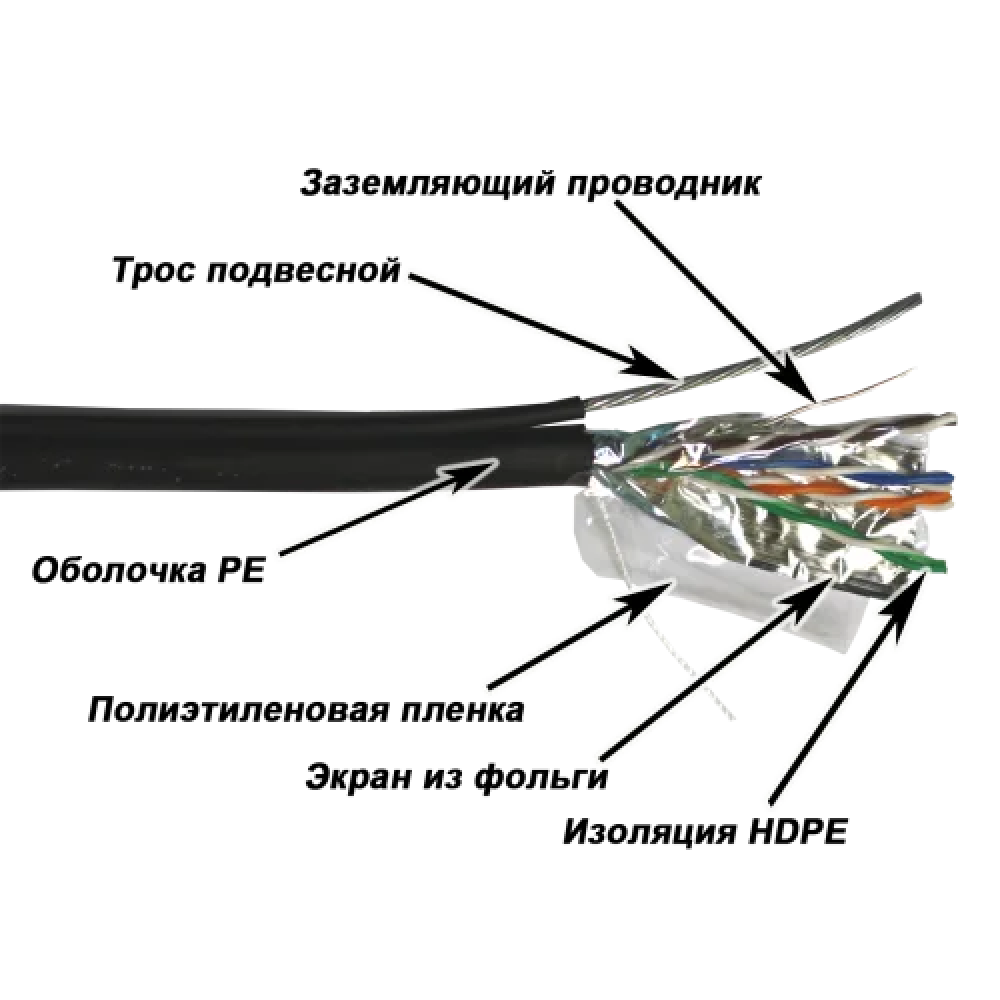 Кабель TWT FTP, 4 пары, Кат.5e, для внешней прокладки, с тросом, 305 м предназначен для установки в условиях, где требуется высокая защита от внешних воздействий и механических повреждений. Он оснащен фольгированным экранированием (FTP), что обеспечивает защиту от электромагнитных помех и улучшает стабильность передачи данных. Кабель также имеет внешнюю оболочку, защищенную от воздействия атмосферных условий, что делает его идеальным для использования при прокладке наружных коммуникаций. В комплекте имеется трос для удобства натяжения и прокладки кабеля на большие расстояния.