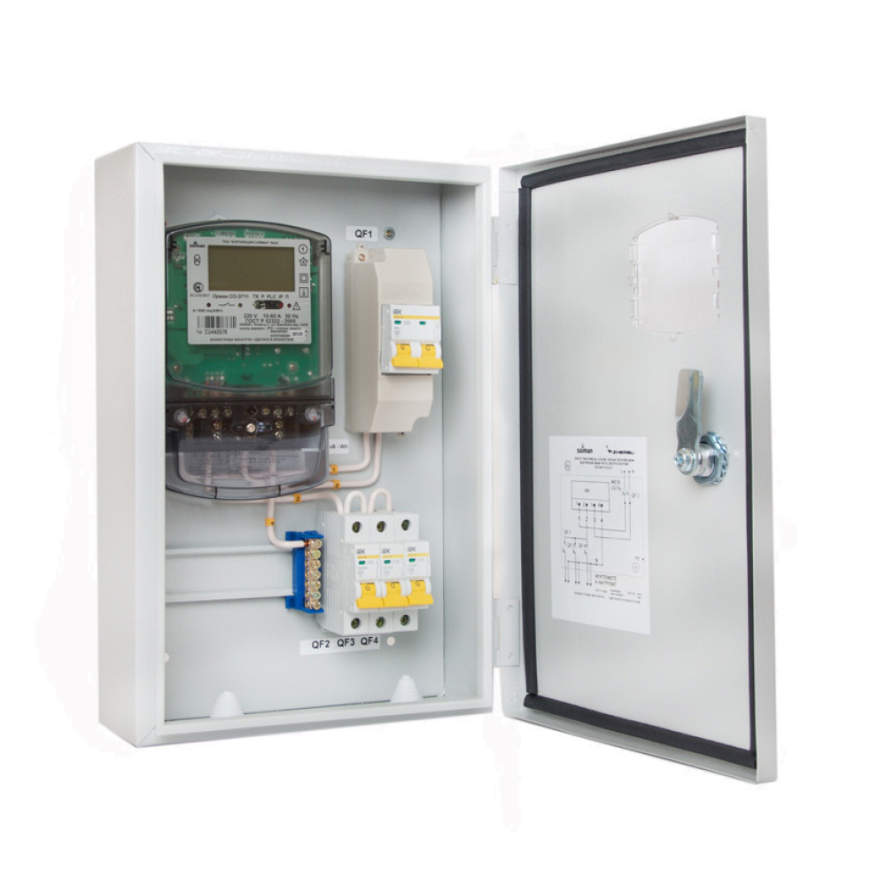 Шкафы учета электроэнергии с однофазным или трехфазным электросчетчиком с автоматическими выключателями предназначены для распределения и учета электрической энергии напряжением 220В, 3х220/380В, а также для защиты линий потребителя при перегрузках и коротких замыканиях.