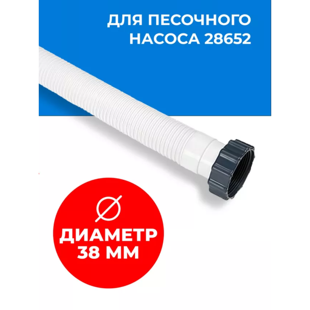 Запасной гофрированный гибкий шланг позволяет соединять различное оборудование, чаще всего фильтрующие насосы. Его диаметр составляет 38 мм, благодаря чему он может использоваться для больших бассейнов. Длина шланга – 0,46 м.