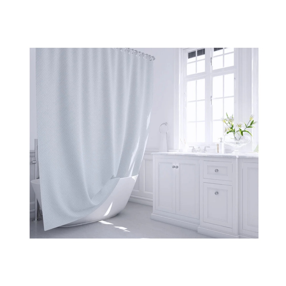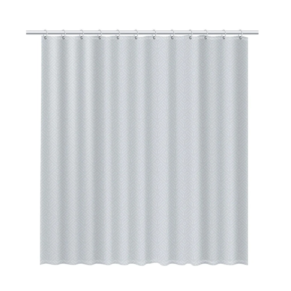 Шторка из 100 % полиэстера с водоотталкивающей пропиткой. Плотность — 100 г/м². Оснащена 12 металлическими люверсами Ø 10 мм, а также резиновым утяжелителем. Крепление — навесной монтаж (люверсы), кольца в комплект не входят. Размер — 180 × 200 см