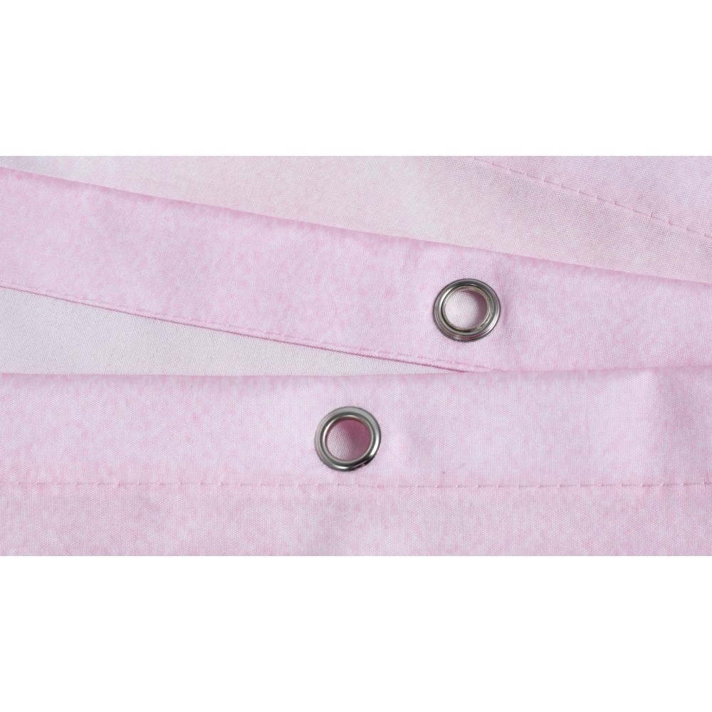 Из 100 % полиэстера с водоотталкивающей пропиткой. Плотность ткани — 100 г/м². Оснащена 12 металлическими люверсами Ø 10 мм и резиновым утяжелителем. Навесная установка через люверсы; кольца в комплект не входят. Размер ткани — 180 × 200 см. Цвет — розовый с абстрактным рисунком