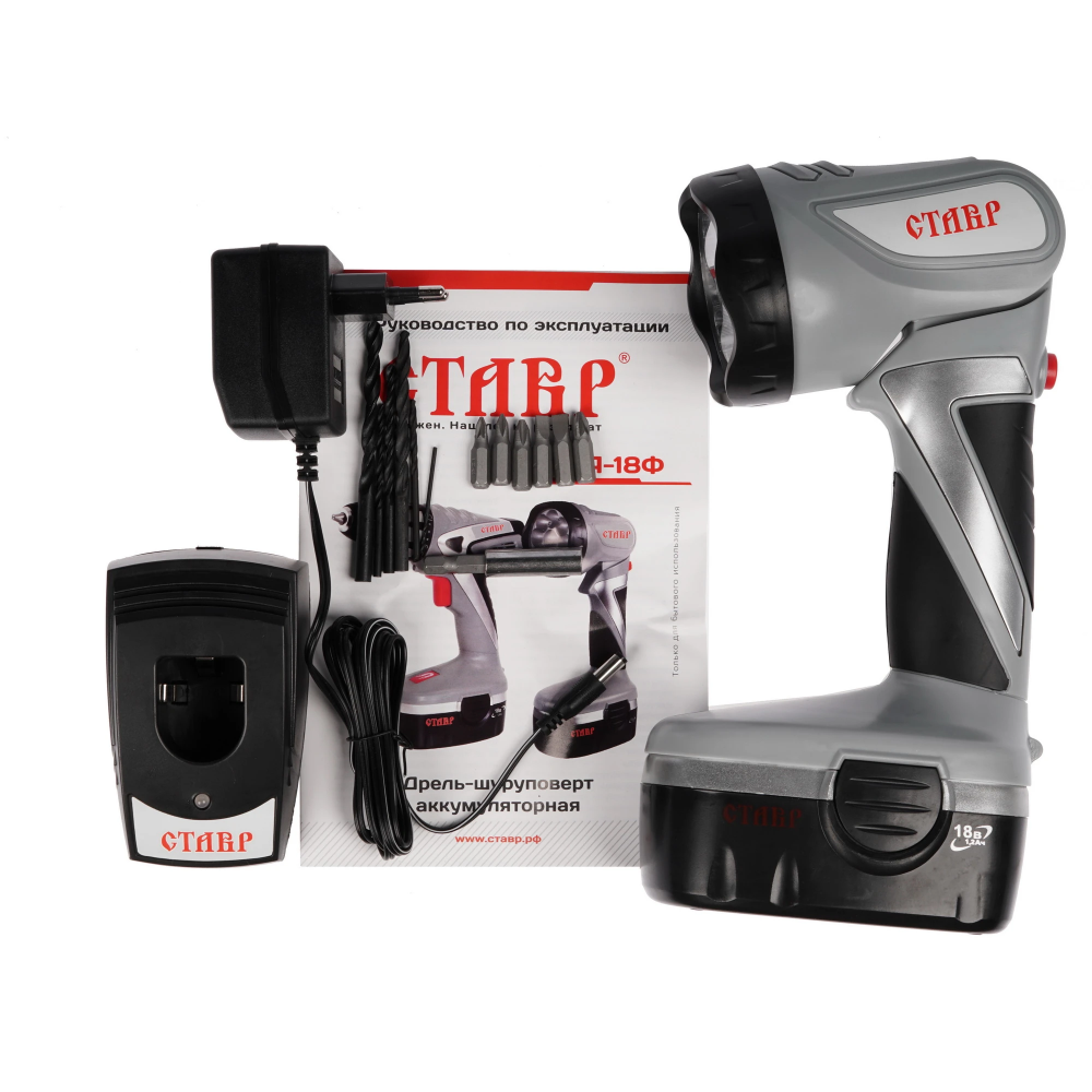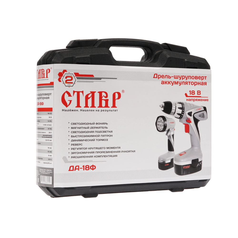 Сверло застряло или необходимо выкрутить крепеж? С этим справится функция реверса. Опасаетесь, что саморез может слишком «утопиться» в поверхность»? От этого убережет ограничитель. Требуется ювелирно-точная работа? Используйте подсветку. Чтобы хранить и транспортировать Ставр ДА-18Ф весом 1.7 кг, в комплекте идет кейс. Питание устройства осуществляется посредством двух аккумуляторов емкостью 1.2 А*ч, так что Вы можете брать инструмент в любое место, не думая о необходимости питания от сети.