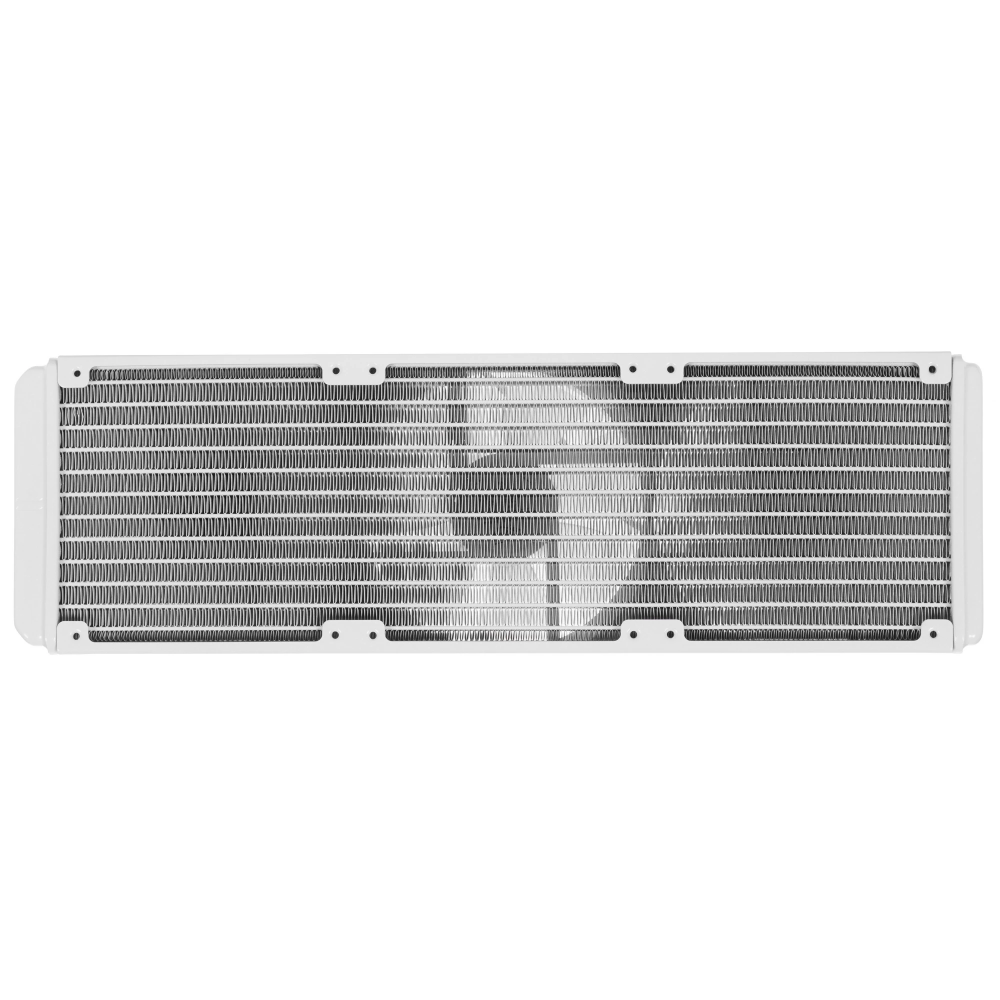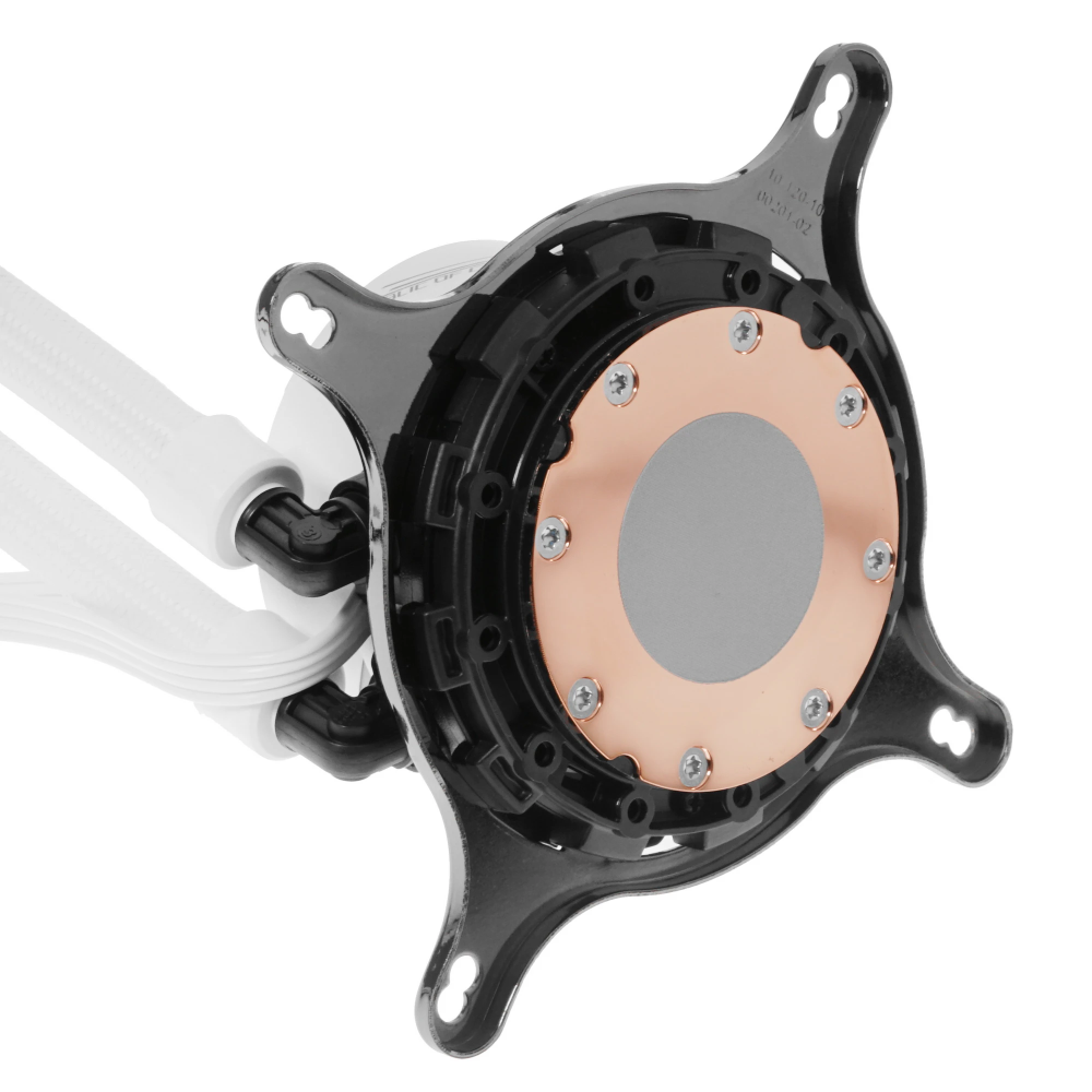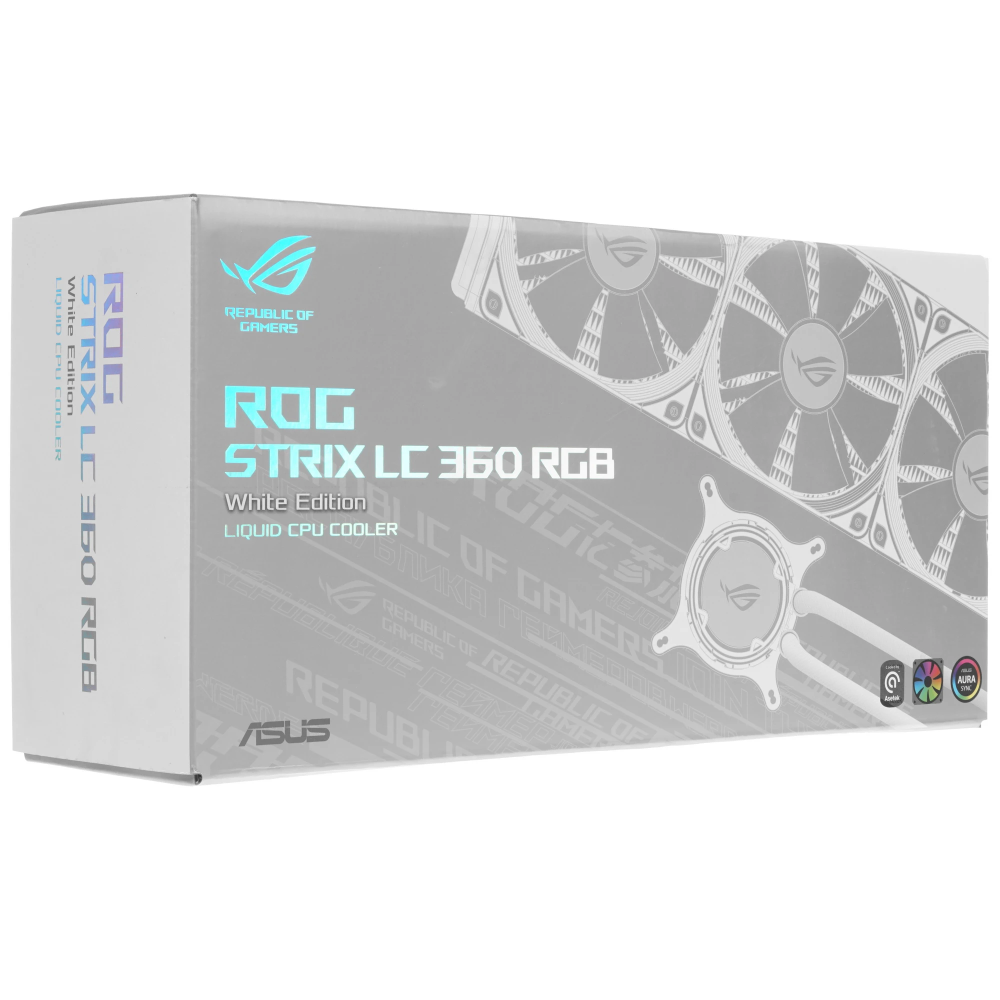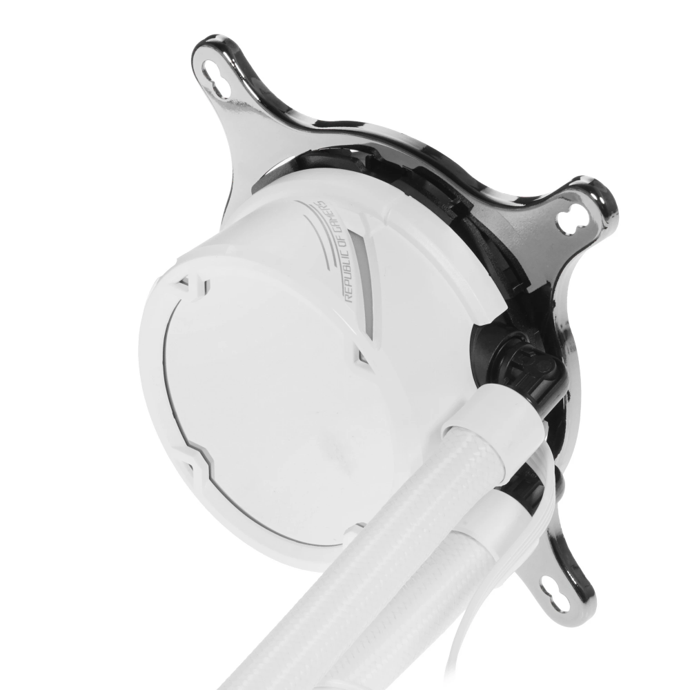 Система охлаждения ASUS ROG Strix LC 360 RGB White Edition в белом цветовом исполнении эффектно выглядит благодаря настраиваемой подсветке на ARGB-светодиодах и оптимально подходит для процессора на сокете AM4, LGA 2066, LGA 2011-v3, LGA 2011 или другом. Универсальная СВО станет верным решением для подвергшегося разгону ЦПУ, работающего в условиях повышенной тепловой нагрузки. В ней применяются алюминиевый радиатор с габаритами 394x121x27 мм и посадочными местами под 3 кулера и медный водоблок, габариты которого равняются 80x80x45 мм.