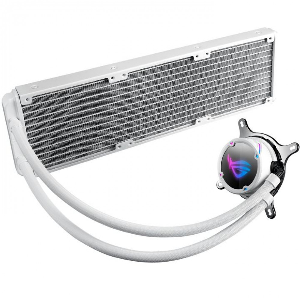 ASUS ROG Strix LC 360 RGB White Edition — это мощная система жидкостного охлаждения, созданная для игровых сборок с уклоном в эстетику. Модель оснащена радиатором длиной 360 мм и тремя 120-мм вентиляторами с яркой RGB-подсветкой. Белый дизайн всей системы (включая шланги, вентиляторы и водоблок) идеально впишется в светлую конфигурацию ПК. Поддержка Aura Sync обеспечивает синхронизацию подсветки с другими компонентами системы. Надежная помпа, медное основание и высокая производительность делают эту СВО отличным выбором для охлаждения мощных процессоров.