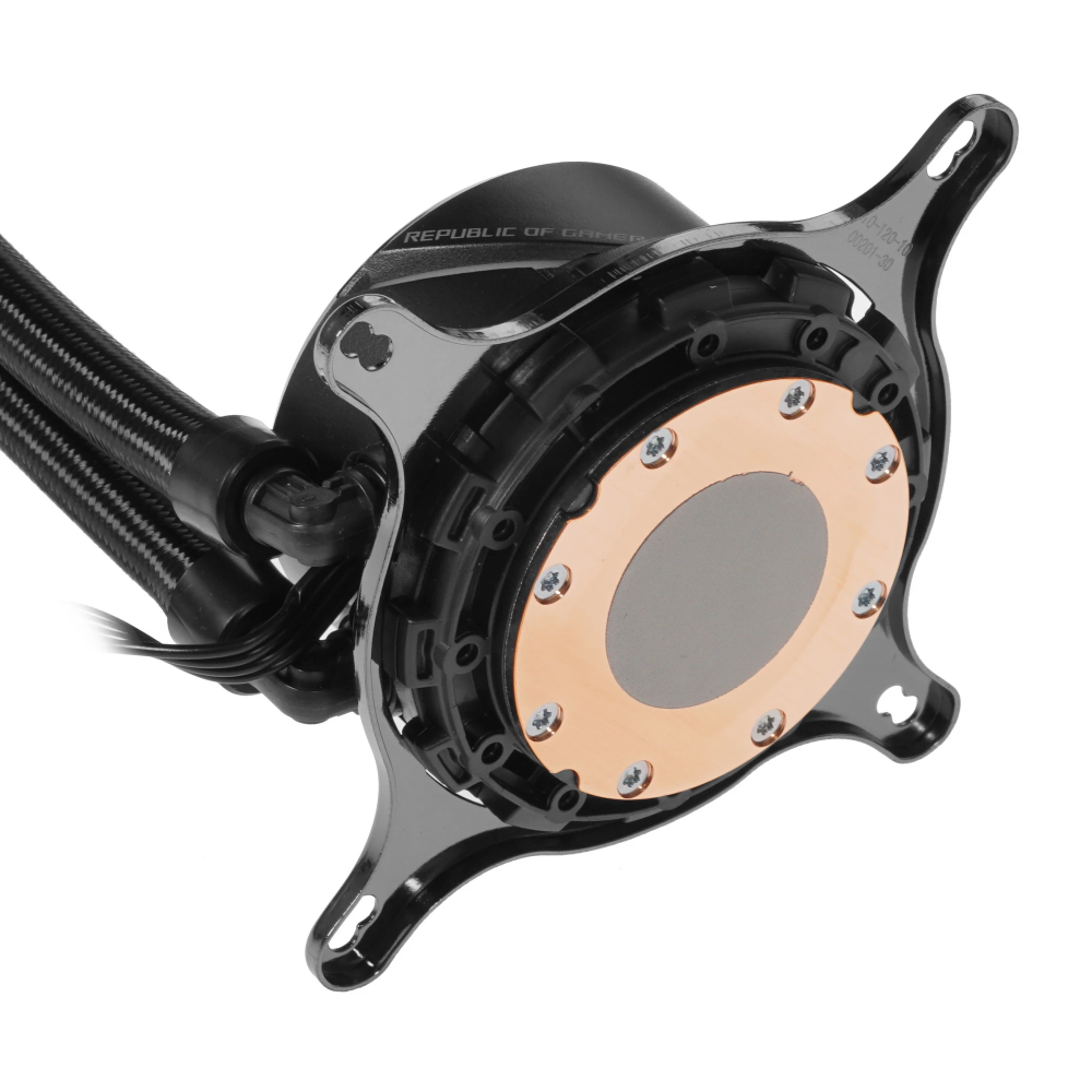 Система охлаждения ASUS ROG STRIX LC 360 RGB отличается высокой мощностью и станет отличным выбором для игровых и рабочих систем, основанных на производительных процессорах Intel и AMD с высоким тепловыделением. Основой данной модели служит медный водоблок и алюминиевый радиатор, соединенные между собой шлангами длиной 380 мм, что обеспечивает эффективный отвод тепла. Также система охлаждения оснащена 3 вентиляторами размером 120 мм, которые могут работать на скорости вплоть до 2500 об/мин. Благодаря этому поток воздуха обладает высокой интенсивностью и может достигать отметки в 80.95 CFM. В основе конструкции вентиляторов используются гидродинамические подшипники, главной особенностью которых является низкий уровень шума, а также высокая надежность и отказоустойчивость.