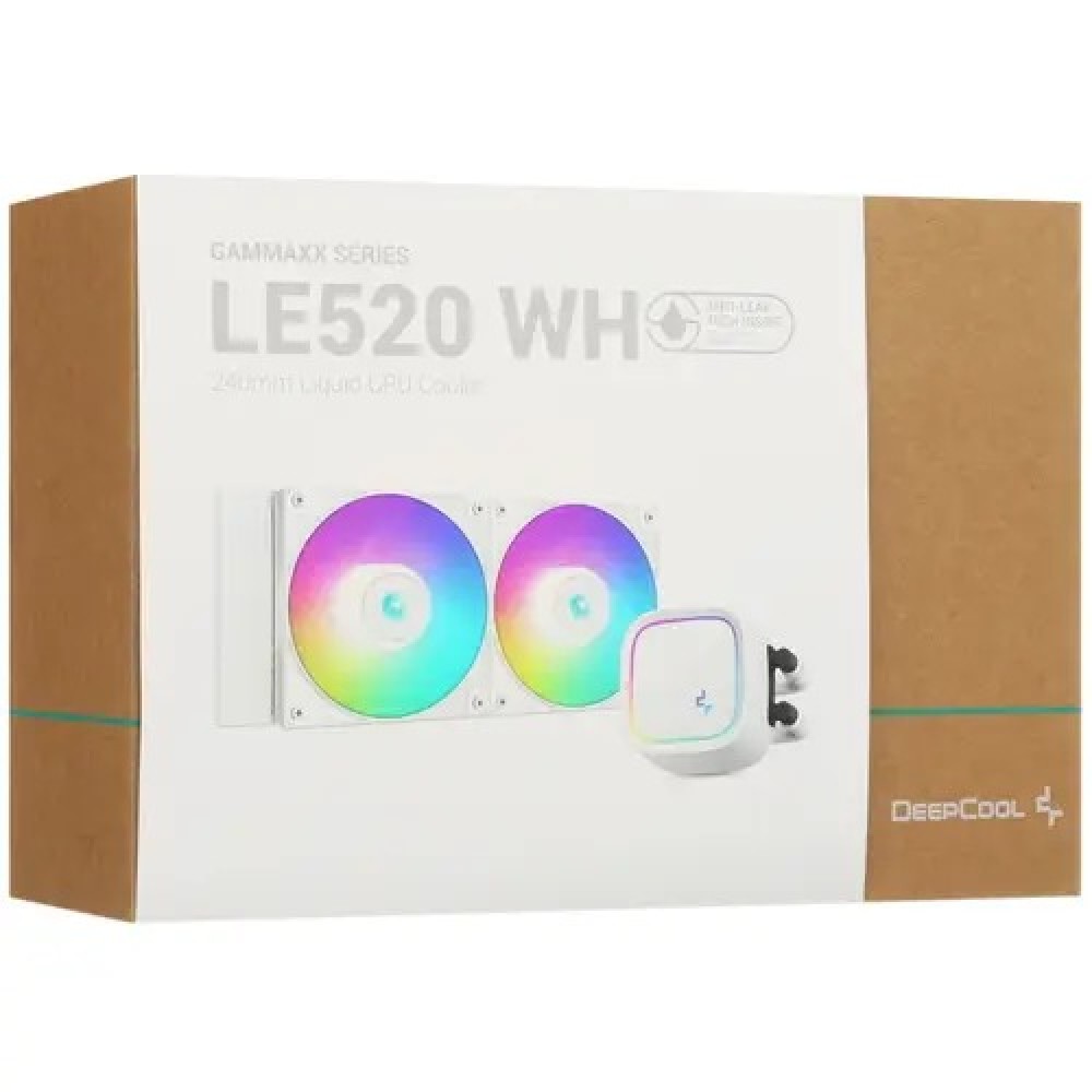 СЖО DEEPCOOL LE520 WH премиум-класса для процессора обеспечивает максимальную эффективность охлаждения и низкий уровень шума благодаря 240-мм радиатору и двум вентиляторам 120 мм с A-RGB и PWM.