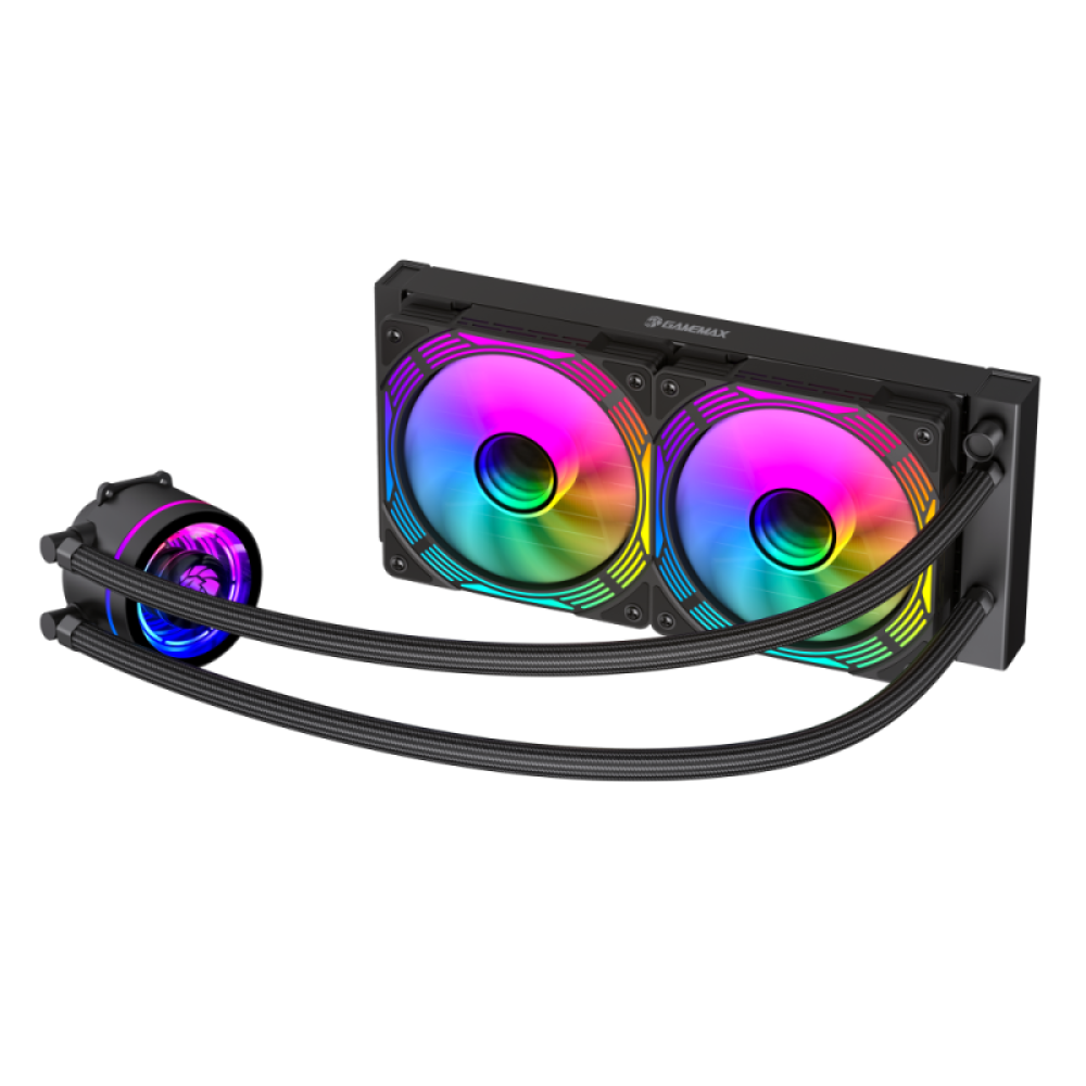 Система водяного охлаждения от компании GameMax получила яркую и стильную Aura ARGB ligh. Изделие оснащено алюминиевым радиатором, который помогает быстрее охладить процессор. Вентилятор имеет широкие лопасти, которые способны захватить большое количество воздуха. За одну минуту изделие выполняет от 800 до 2000 оборотов. Подключается устройство с помощью коннектора 4 Pin.