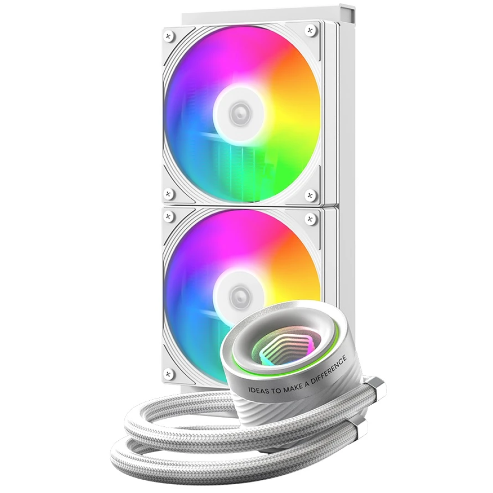 Жидкостная система охлаждения ID-Cooling FX240 INF совместима с сокетами Intel и AMD. Устройство рассеивает мощность до 300 Вт. Показатель достаточен для безопасной и эффективной работы процессора экстра-класса. Система охлаждения подходит для оснащения мощного игрового ПК или высокопроизводительной рабочей станции. Эффективность устройства обеспечивается мощным мотором помпы, высокой плотностью ребер радиатора и двумя 120-миллиметровыми вентиляторами. Их скорость вращения регулируется автоматически, в диапазоне от 300 до 2000 оборотов в минуту. Максимальный уровень шума вентиляторов – 27.2 дБ. Система работает почти бесшумно при минимальной нагрузке на процессор.