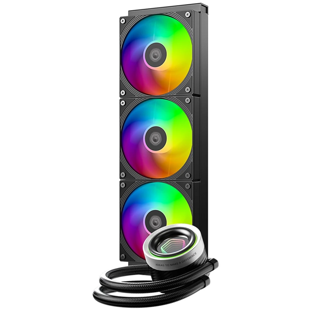 Жидкостная система охлаждения ID-Cooling FX360 INF совместима с сокетами Intel и AMD. Устройство рассеивает мощность до 350 Вт. Показатель достаточен для безопасной и эффективной работы процессора экстра-класса. Система охлаждения подходит для оснащения мощного игрового ПК или высокопроизводительной рабочей станции. Эффективность устройства обеспечивается мощным мотором помпы, высокой плотностью ребер радиатора и тремя 120-миллиметровыми вентиляторами. Их скорость вращения регулируется автоматически, в диапазоне от 300 до 2000 оборотов в минуту. Максимальный уровень шума вентиляторов – 27.2 дБ. Система работает почти бесшумно при минимальной нагрузке на процессор.