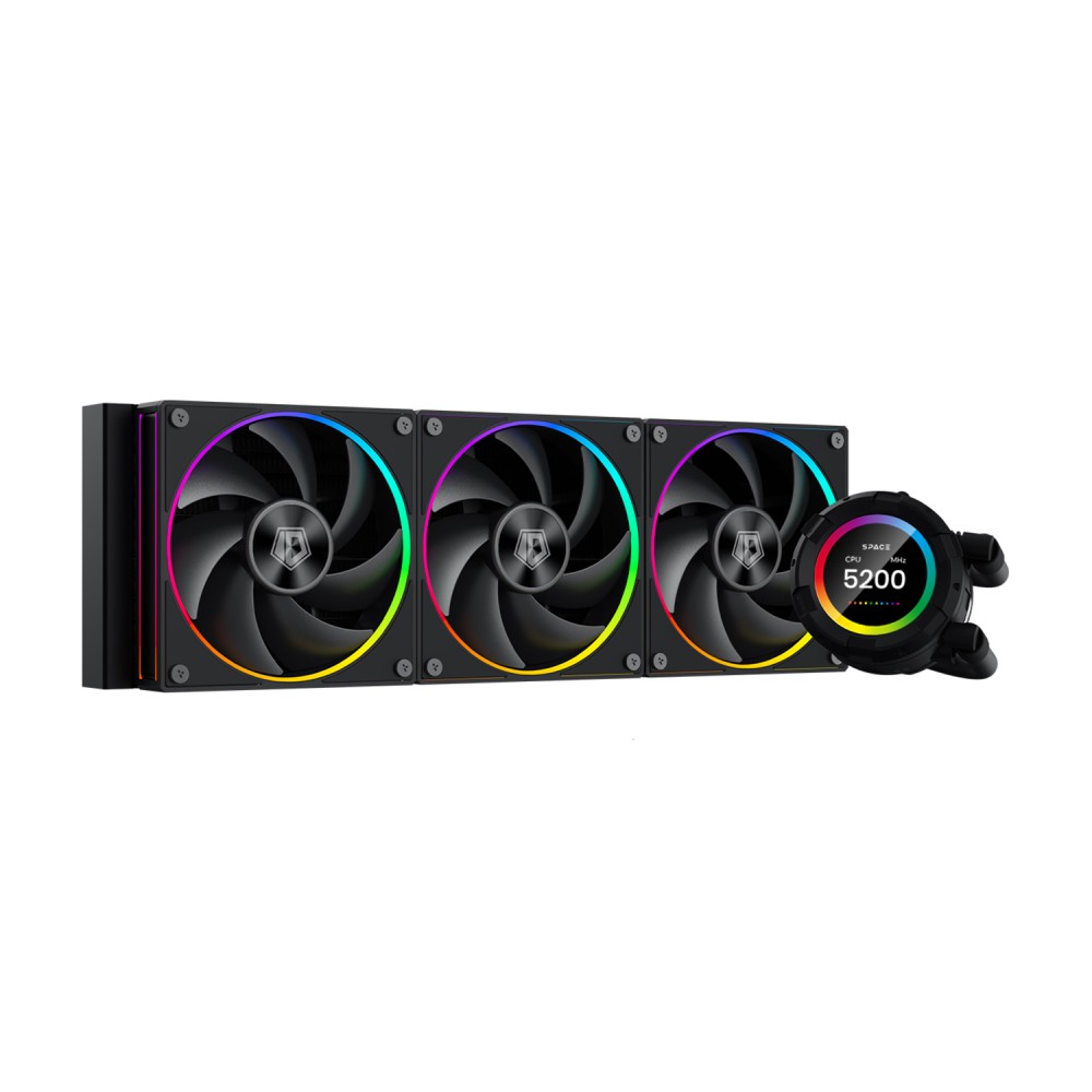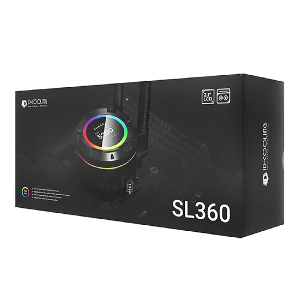 Система охлаждения ID-Cooling SL360 располагает медным водоблоком с дисплеем диагональю 2.1" и легким алюминиевым радиатором. 120-миллиметровые вентиляторы базируются на долговечных гидродинамических подшипниках. Диапазон частоты вращения вентиляторов – от 500 до 2000 оборотов в минуту. Регулировка скорости вращения осуществляется в автоматическом режиме. Максимальный воздушный поток, обеспечиваемый каждым из вентиляторов, составляет 78 CFM. Система охлаждения является малошумной. Пиковый уровень шума одного вентилятора – лишь 29,9 дБ. Украшение устройства – адресная RGB-подсветка. Система охлаждения необслуживаемая: она не рассчитана на замену компонентов и охлаждающей жидкости.