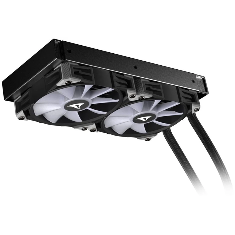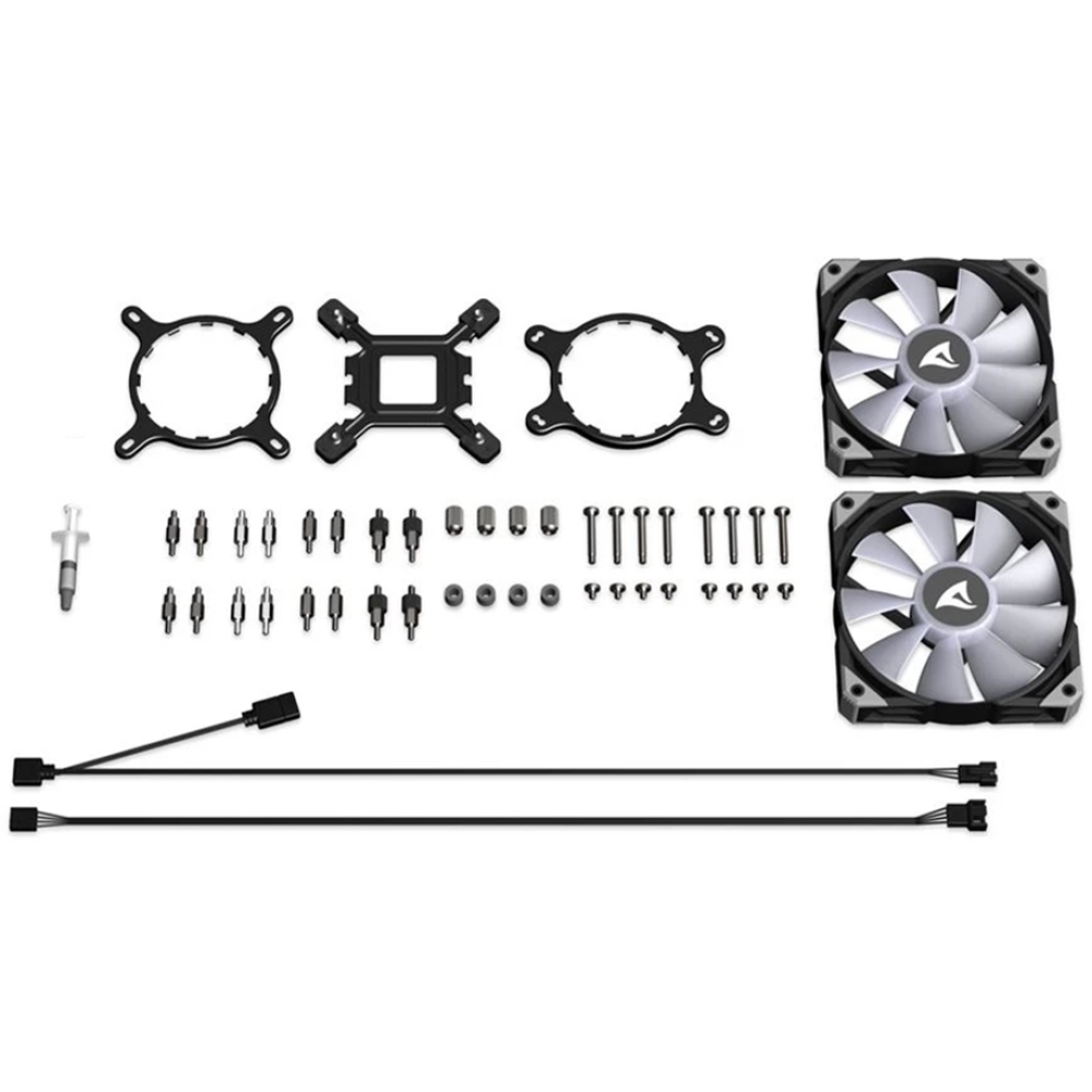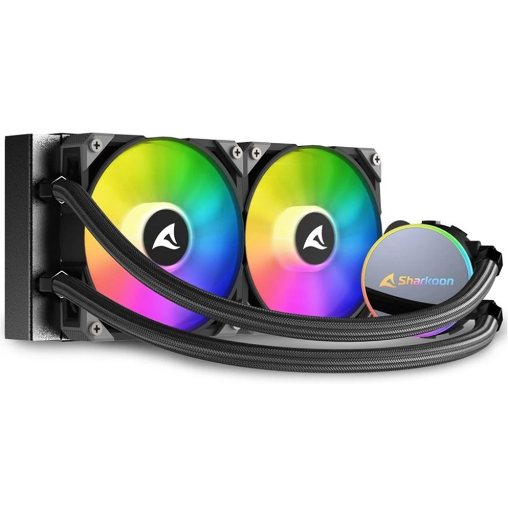 Sharkoon S70 RGB с 240-мм радиатором — это компактная универсальная система водяного охлаждения, которая эффективно охлаждает любые процессоры. Адресные RGB PWM-вентиляторы обеспечивают хорошее охлаждение со скоростью от 600 до 2 000 об/мин. и предлагают яркую подсветку из 16,7 млн цветов. Насос с PWМ-управлением обеспечивает максимальную производительность и низкий уровень шума. Установка системы очень проста благодаря гибким оплетенным трубкам и входящим в комплект крепежным кронштейнам.