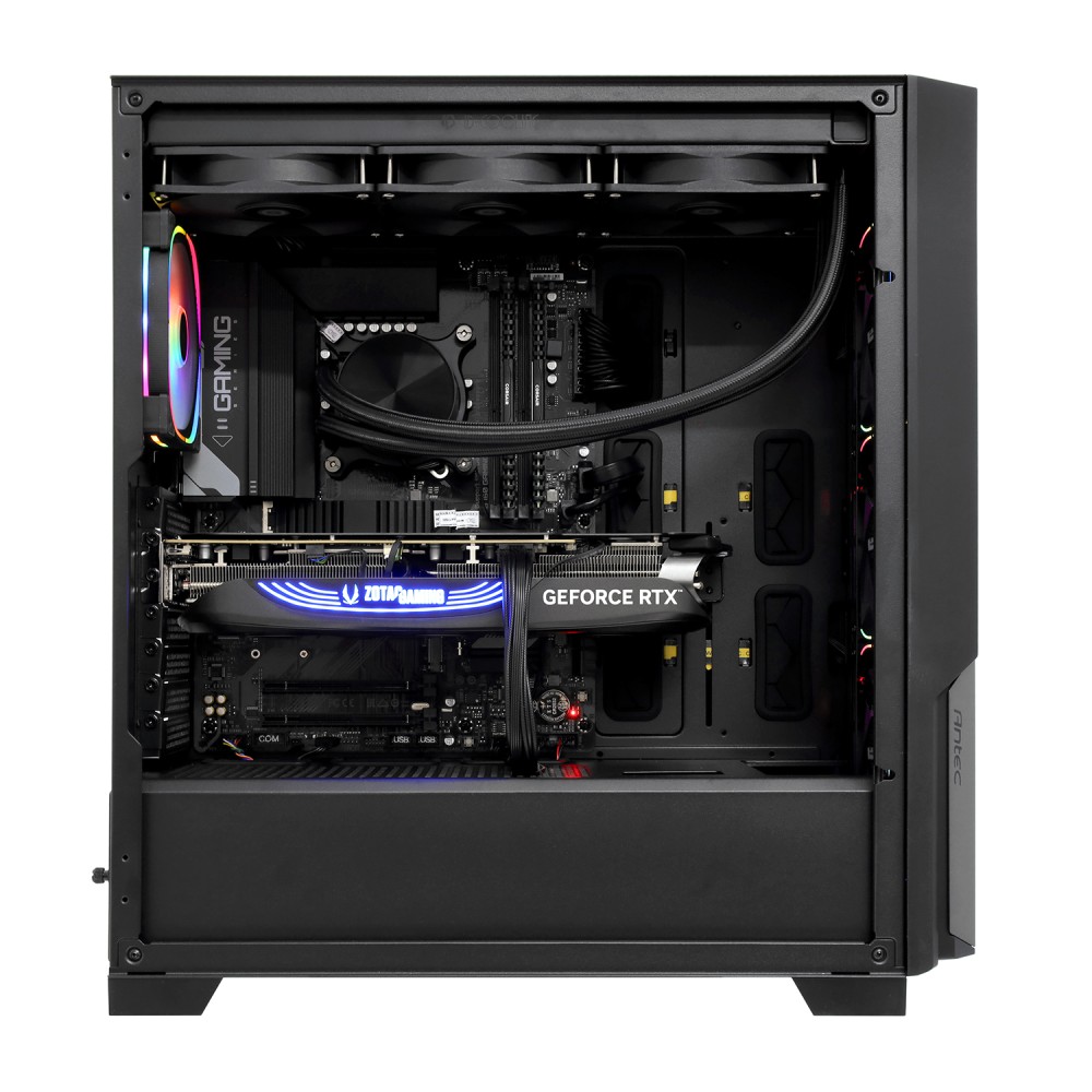 Системный блок оборудован мощным процессором Intel Core i7 и дискретной видеокартой NVIDIA GeForce RTX 4080 SUPER с 16 ГБ видеопамяти, обеспечивающей потрясающее качество графики для игр и работы. Система водяного охлаждения и ARGB-подсветка добавляют стиль и поддерживают оптимальные температуры даже при интенсивной нагрузке.