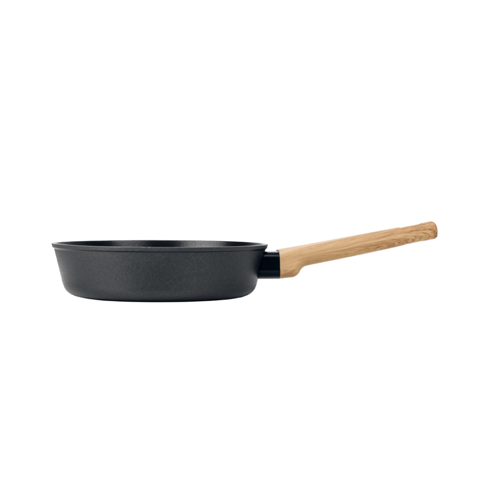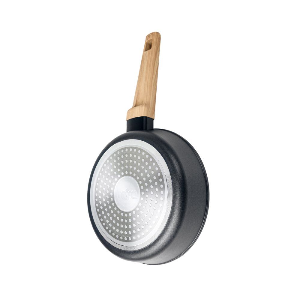 LARA Окинава LR01-191-24 диаметром 24 см использует деревянную ручку. Благодаря покрытию Soft-Touch она не выскальзывает из рук. Внутри сковороды выполнено антипригарное покрытие на водной основе. Оно устойчиво к температурным перепадам, не позволяет пище пригорать даже при минимальном количестве масла или его отсутствии.