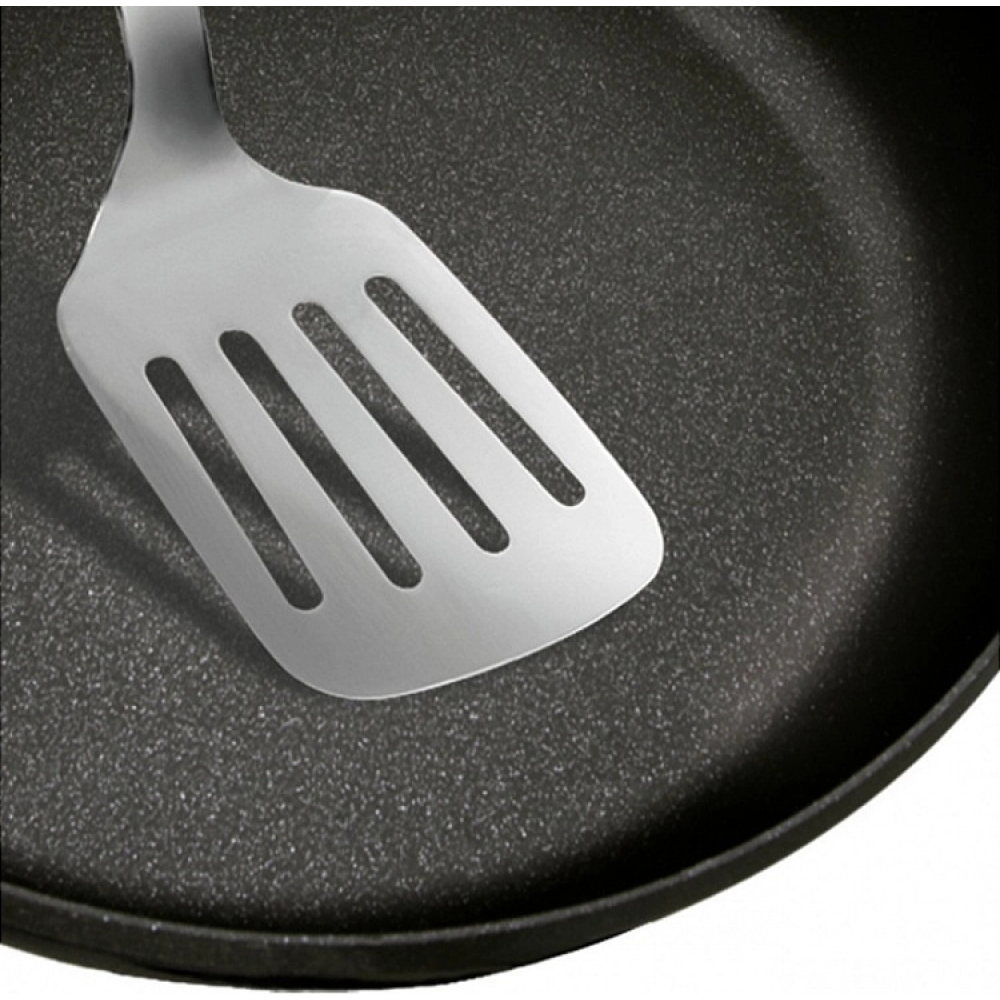Вариации на тему изящного завтрака Блины способны выручить в самых разных гастрономических ситуациях. Пышные панкейки подойдут для завтрака, тонкие блинчики с несладкой начинкой, свернутые рулетиками, хороши в качестве закуски, а большие — могут стать основой оригинальных тортов. Поэтому значение правильной посуды для приготовления этого блюда трудно переоценить. Проверьте в деле блинные сковороды коллекции Pancake frypan и убедитесь, что процесс может быть не только простым, но еще и очень приятным. Их внутреннее трехслойное антипригарное покрытие TriTitan® обеспечивает безупречный результат: блинчики не пристают ко дну и легко переворачиваются. Особый комфорт обеспечивают также ненагревающиеся бакелитовые ручки, благодаря которым вам не придется использовать прихватки или полотенца. Следует отметить, что в коллекции есть две сковороды (диаметром 22 и 24 см), которые подходят как для обычных, так и для индукционных плит. И, наконец, стоит обратить внимание на доступные цены, которые, безусловно, порадуют всех любителей кулинарии