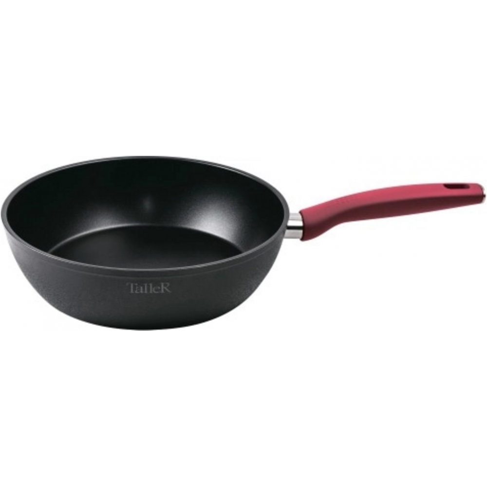 Материл корпуса - кованый алюминий. Внешнее покрытие устойчиво к высоким температурам и загрязнениям и долго сохраняет превосходный внешний вид. Дно толщиной 4,9 мм обеспечивает великолепный результат при приготовлении любых блюд. Высокие антипригарные свойства покрытия Whitford Xylan Plus позволяют готовить пищу с минимальным количеством масла. Антипригарное покрытие не содержит PFOA. Бакелитовая ручка с soft-touch покрытием не нагревается при использовании. Подходит для всех типов плит (включая индукционную). Можно мыть в посудомоечной машине без использования щелочных моющих средств