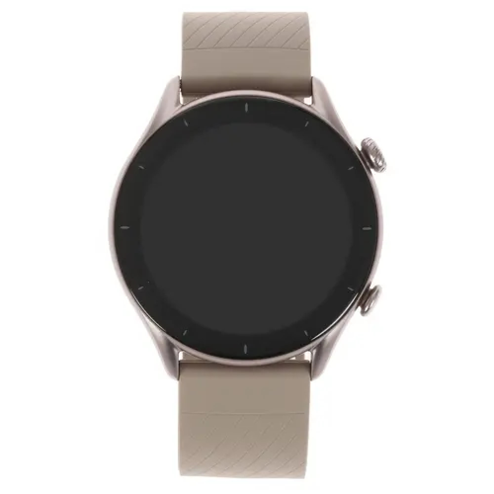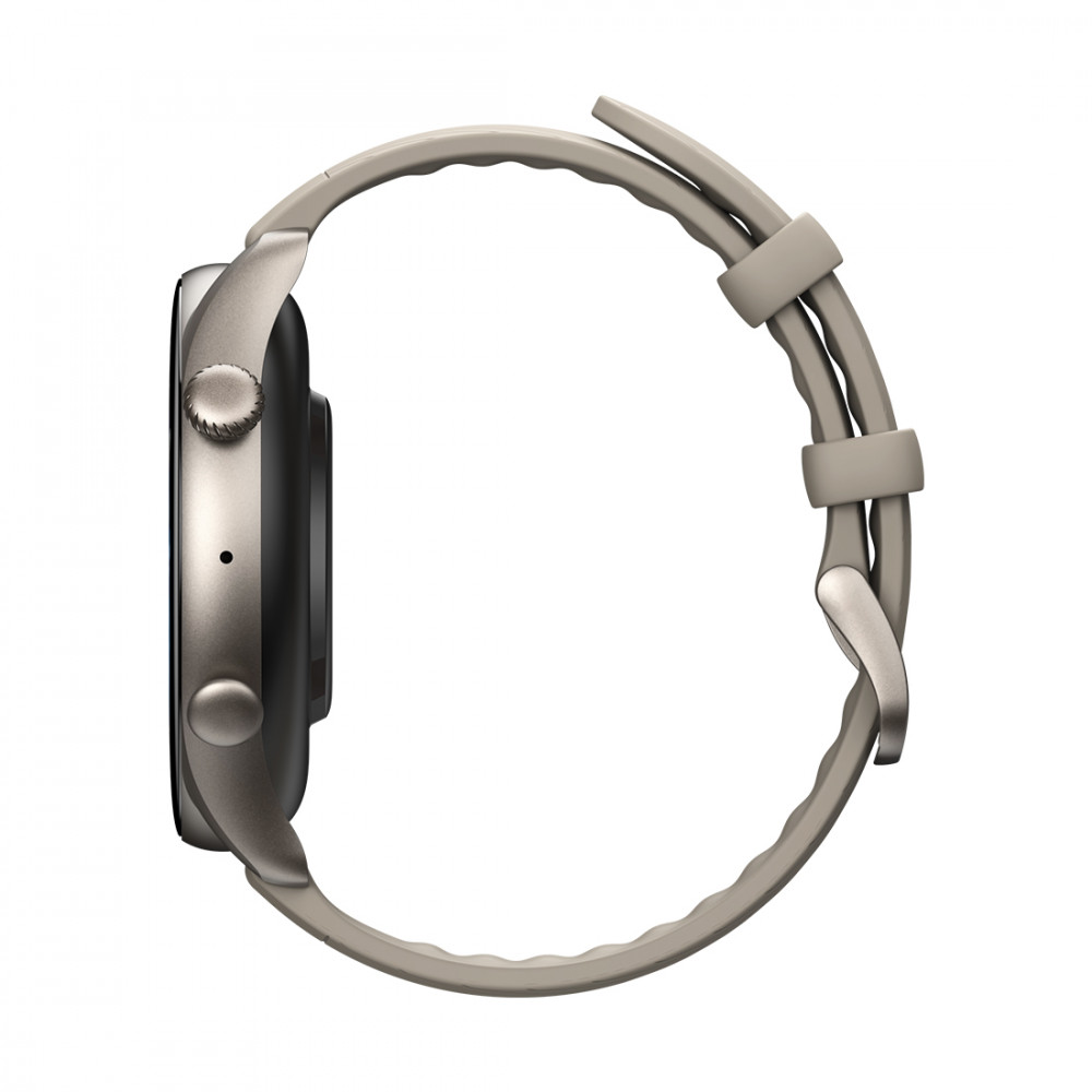 Корпус классической круглой формы выполнен из алюминиевого сплава. Дисплей AMOLED HD размером 1.39 дюйма с разрешением 326 пиксель на дюйм обеспечивает чёткое и крупное изображение. Технология отражения солнечного света позволяет разглядеть картинку при любом освещении, даже ярким солнечным днем. Гипоаллергенный силиконовый ремешок часов приятен на ощупь, не вызывает раздражений или запотевание руки. На внутренней стороне корпуса находится датчик сердечного ритма, который отслеживает физическое состояние в режиме реального времени. Справа расположена единственная кнопка, с помощью которой осуществляется разблокировка часов и выход на главный экран. Всё остальное управление происходит посредством экрана (тачскрина).