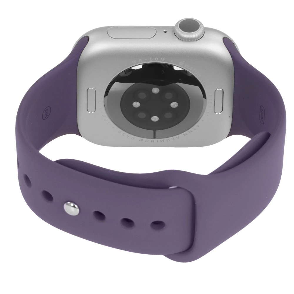 Смарт-часы Apple Watch Series 11 42mm выполнены в серебристом алюминиевом корпусе. Водонепроницаемость 5 Бар гарантирует устойчивость к повышенной влажности, брызгам воды и атмосферным осадкам. В смарт-часах установлен квадратный сенсорный дисплей диагональю 1.77 дюйма. Панель OLED с яркостью до 2000 Кд/м² обеспечивает контрастное четкое изображение при разных условиях внешней освещенности. Стекло Ion-X уберегает от появления царапин.
