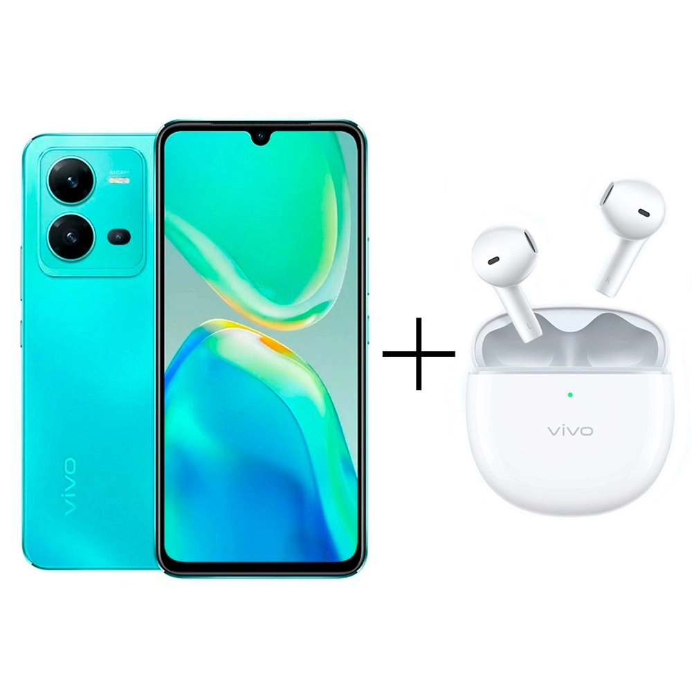 Смартфон Vivo V25 8/256 ГБ голубой (Aquamarine Blue) + Наушники vivo TWS Air Bubble белый (White)