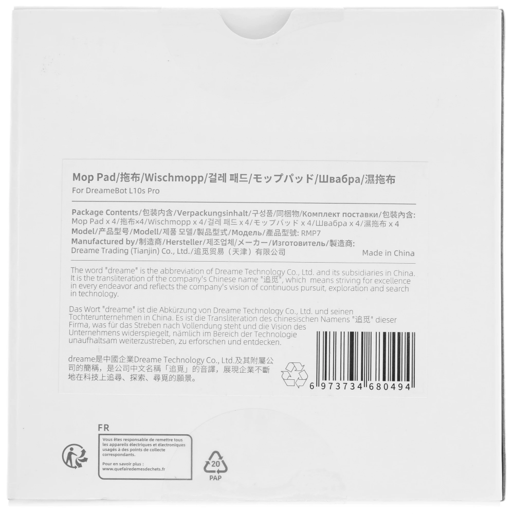 Комплект мопов Dreame RMP7 предназначен для обслуживания робота-пылесоса Dreame L10s Pro. В наборе поставляются 4 сменных мопа, которые имеют круглую форму и мягкие удлиненные волокна из ткани. В режиме влажной уборки насадка очищает гладкие напольные покрытия в помещении от пятен, следов и прочих загрязнений. Волокна тщательно задерживают частицы пыли, мусор, волосы, шерсть домашних питомцев. Салфетки Dreame RMP7 бережно воздействуют на обрабатываемую поверхность и предотвращают появление царапин.