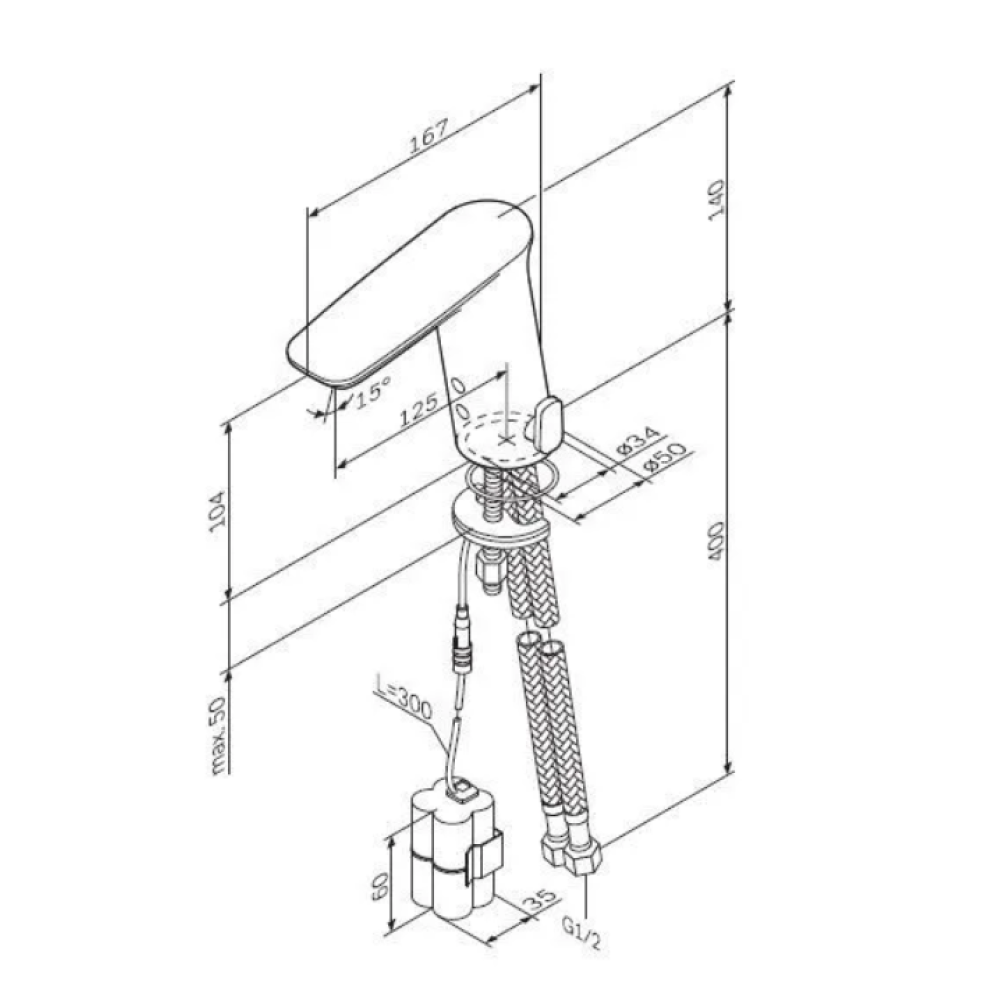 Бесконтактное управление активируется при приближении рук в диапазоне 10–30 см — это удобно и гигиенично. Ручка для регулировки температуры интегрирована в корпус, обеспечивая лёгкую настройку перед началом пользования. Оснащён встроенным электронным соленоидным клапаном, инфракрасным сенсором и постоянной подсветкой состояния батарейного блока. Питание от 4 батареек AA, автономное и практичное.