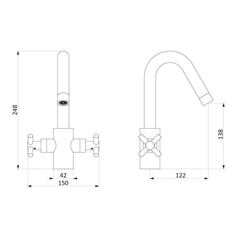 низкий излив (10–15 см): высота 24.8 см, вылет 12.2 см