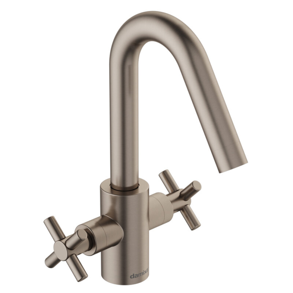 Damixa Neo Classic 280210000 — это элегантный смеситель для умывальника в благородном сатинированном никелевом исполнении. Его высокая изогнутая форма и утончённые крестовидные вентели придают интерьеру изысканный ретро-акцент, отражающий мастерство скандинавского дизайна. Изготовленный из надёжной латуни, покрытый матовым PVD-никелем, он устойчив к отпечаткам, царапинам и выцветанию, сохраняя презентабельный вид даже при ежедневном использовании